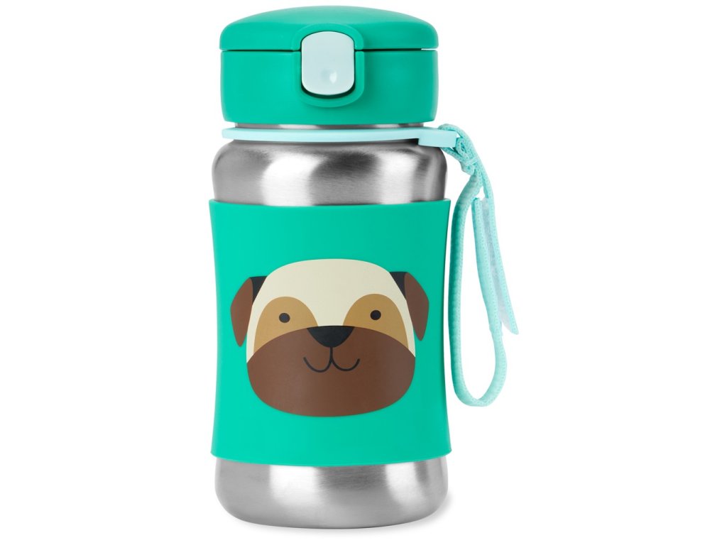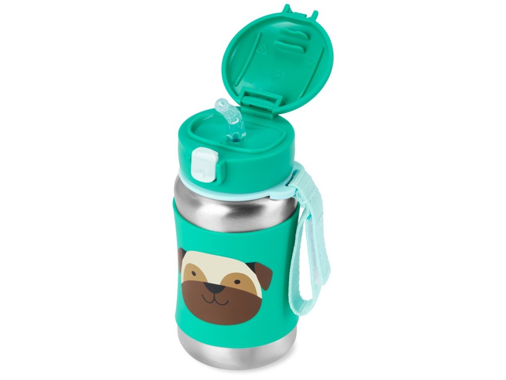 SKIP HOP Spark Style Rozsdamentes acél szívószálas vizes palack Mopszli 12hó+