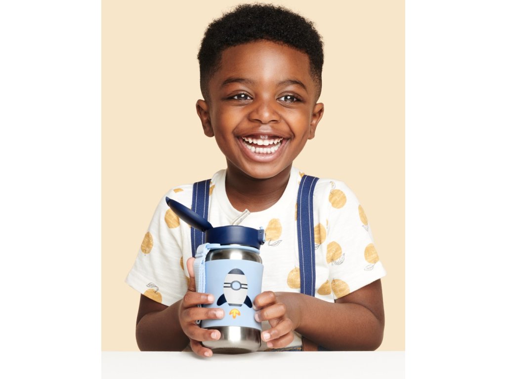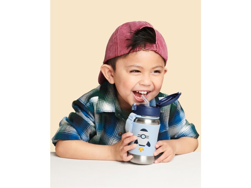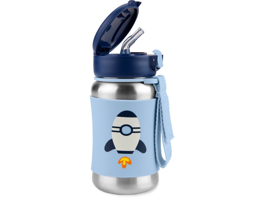 SKIP HOP Spark Style Rozsdamentes acél szívószálas vizes palack Rakéta 12hó+