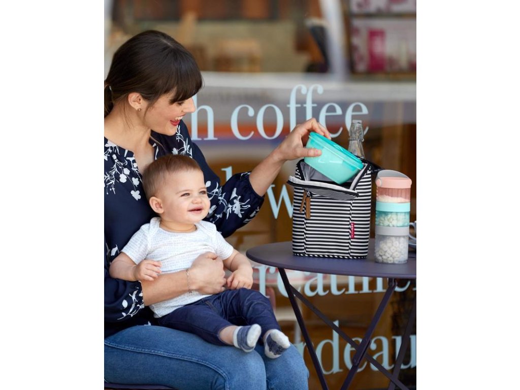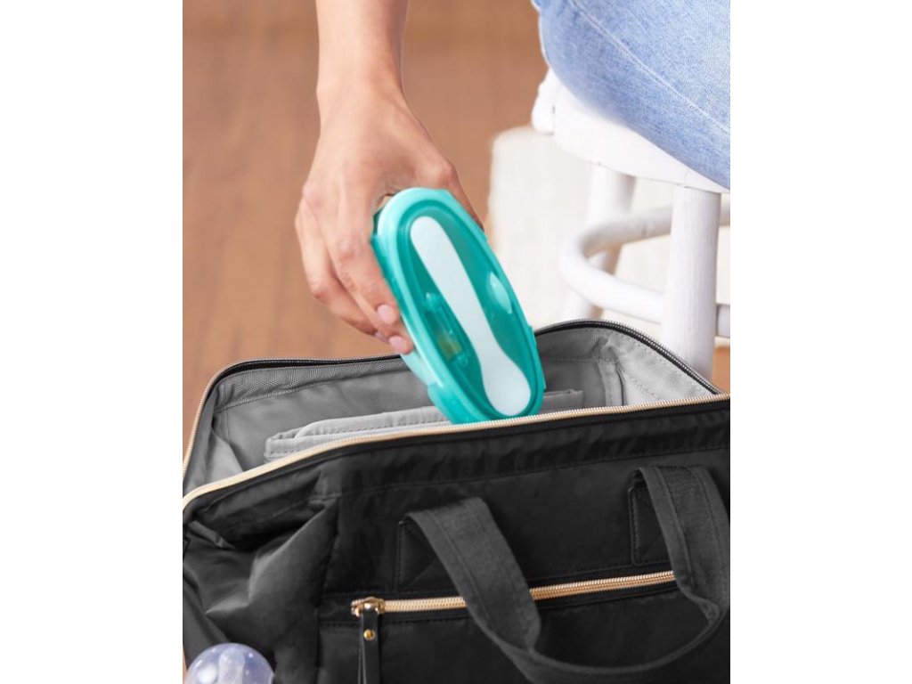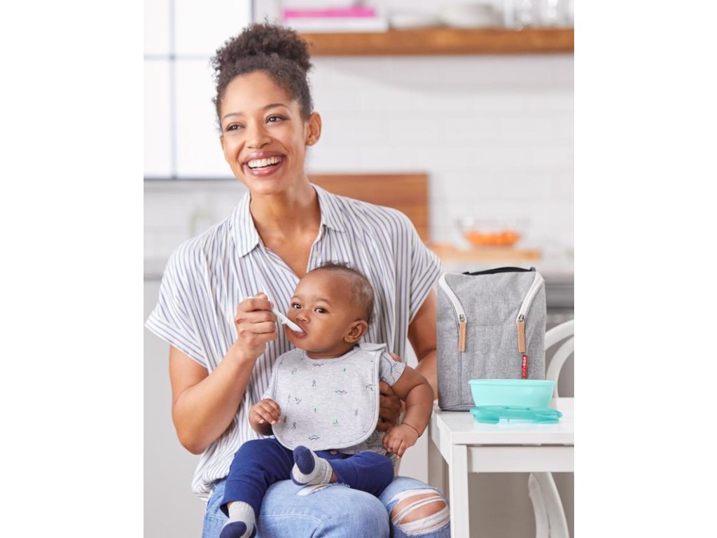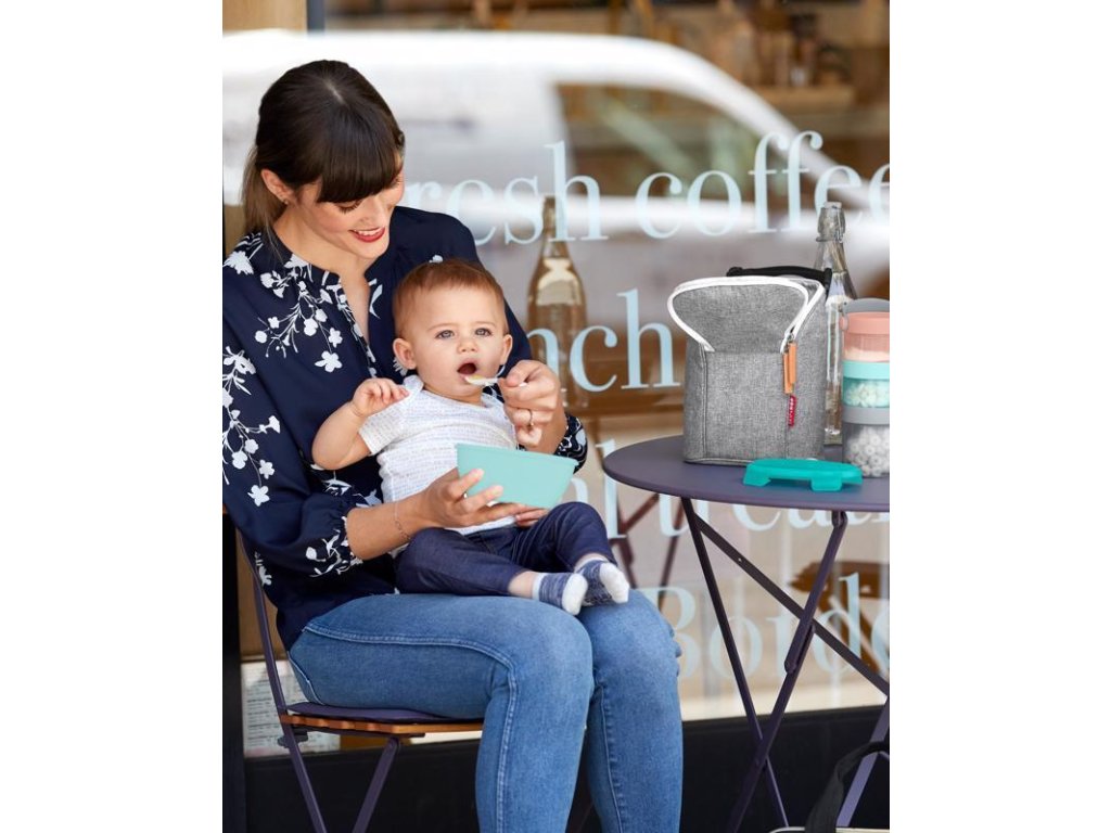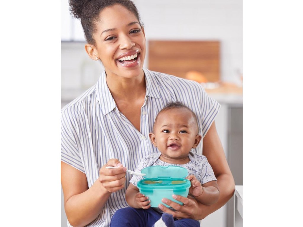 A kényelmes, kanállal ellátott utazó tál úgy lett kialakítva, hogy maximálisan megkönnyítse a baba etetését bárhol útközben. A kanál ergonomikus formája a jobb fogás érdekében. Kiömlésbiztos fedéllel ellátott tál, amelyben hely van a kanál tárolására. Mindent egy helyen tarthat.