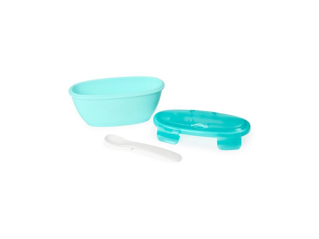 SKIP HOP Tál kanállal, védőtokban Easy Serve Teal 240 ml, 3h+
