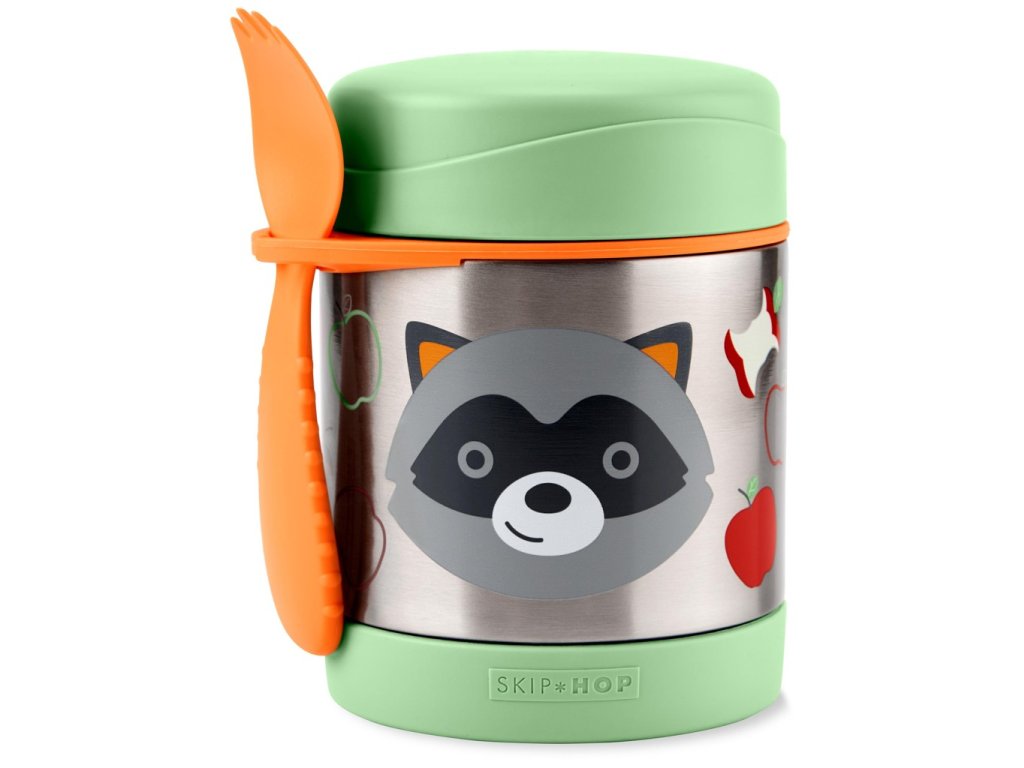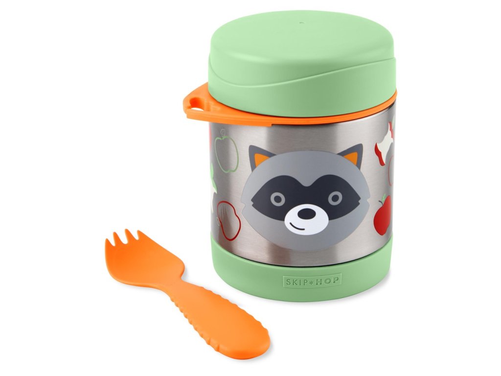 SKIP HOP Zoo Ételtermosz kanál/villával Mosómedve 325 ml, 3 éves kortól