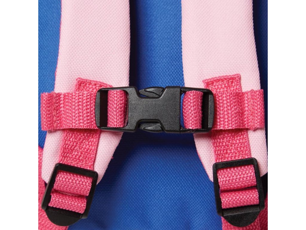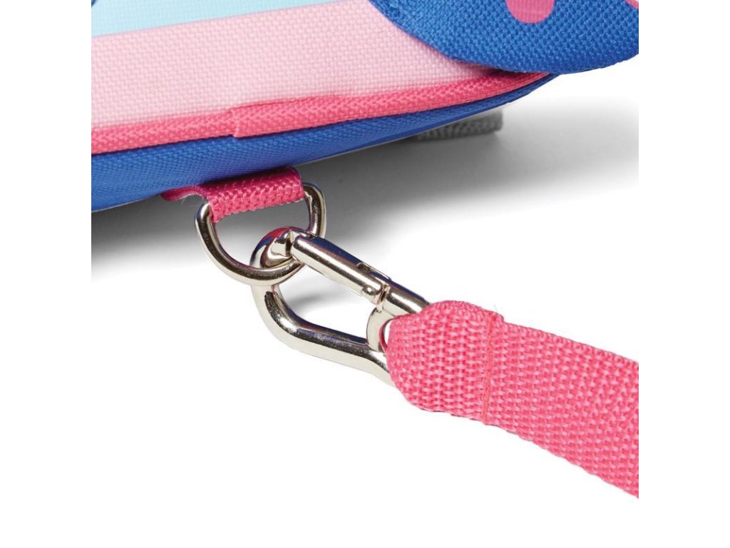 Gyönyörű hátizsák Skip Hop stílusban, biztonsági övvel. A pánt szükség szerint le-/felcsatolható. A hátizsák párnázott, állítható vállpántokkal, fogantyúval, cipzáras főzsebbel, hálós oldalzsebbel a palack számára és névtáblával rendelkezik, hogy a hátizsák ne vesszen el.