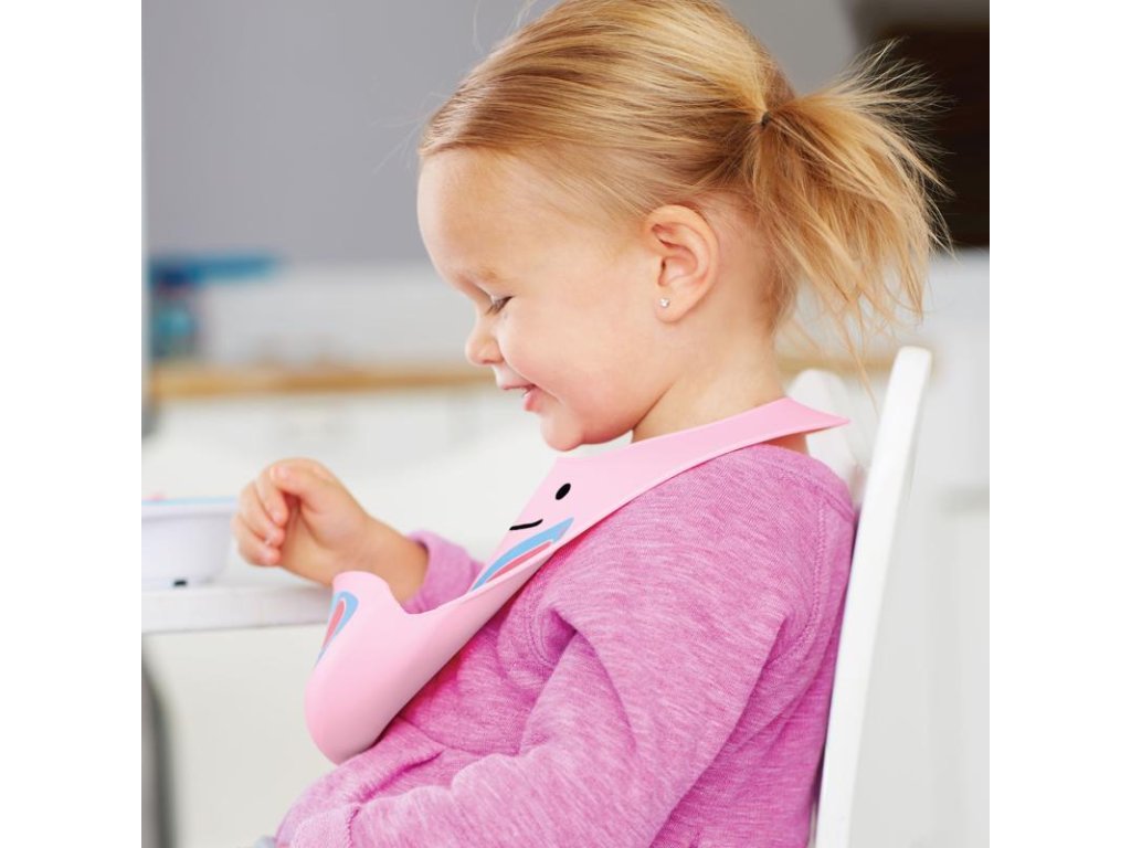 Skip Hop szilikon előke a Zoo kollekcióból, állatfigura formájában. Az előke felfogja a rosszcsont evők által leejtett ételt.