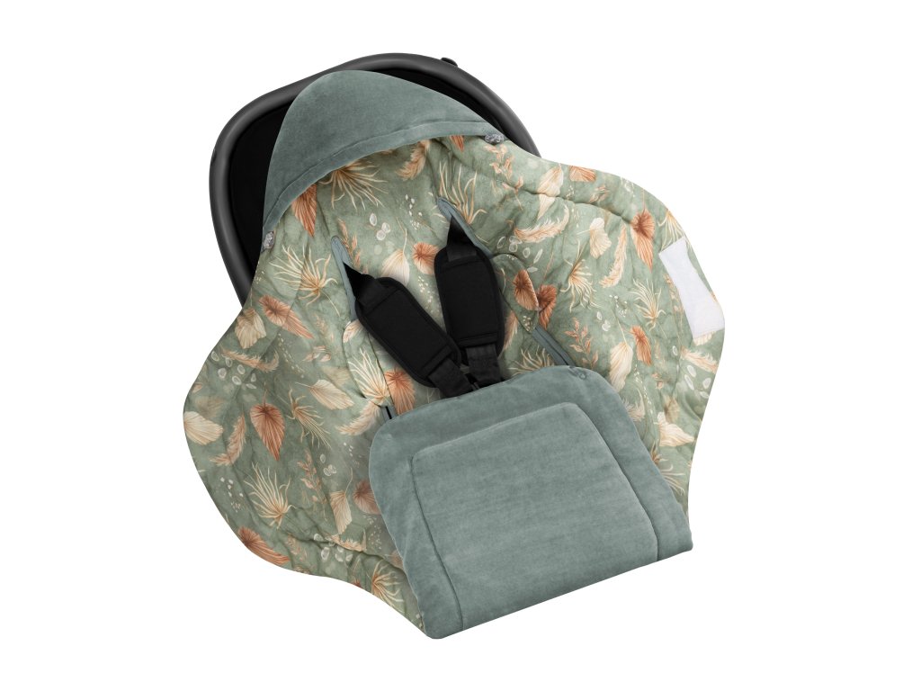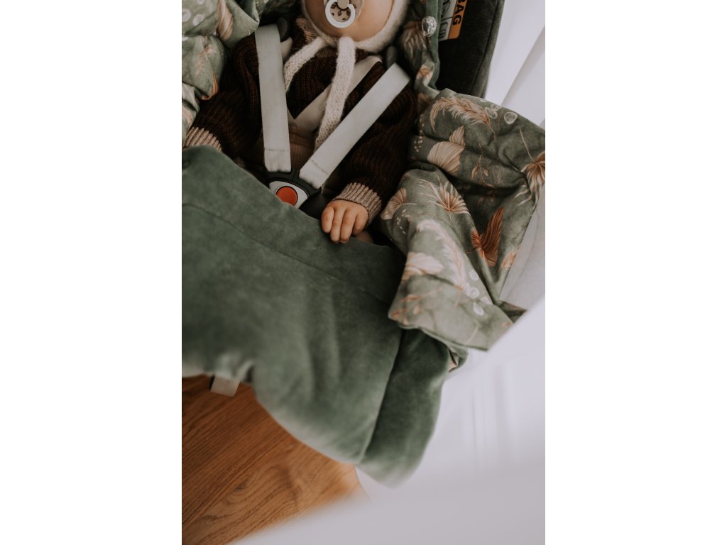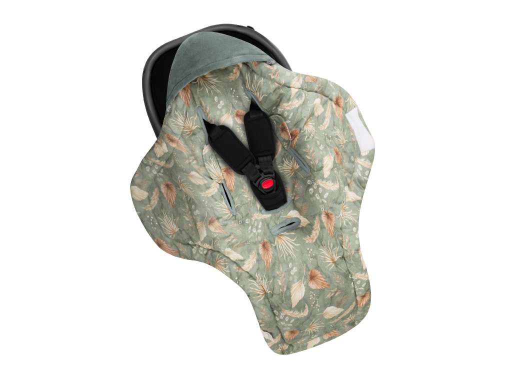 Babakocsi-hálózsák biztonsági öv nyílásokkal, Bohemian Green tökéletes termék minden szülő számára, akik számára a biztonság a legfontosabb, és akik azt szeretnék, hogy a baba melegen legyen utazás közben is.