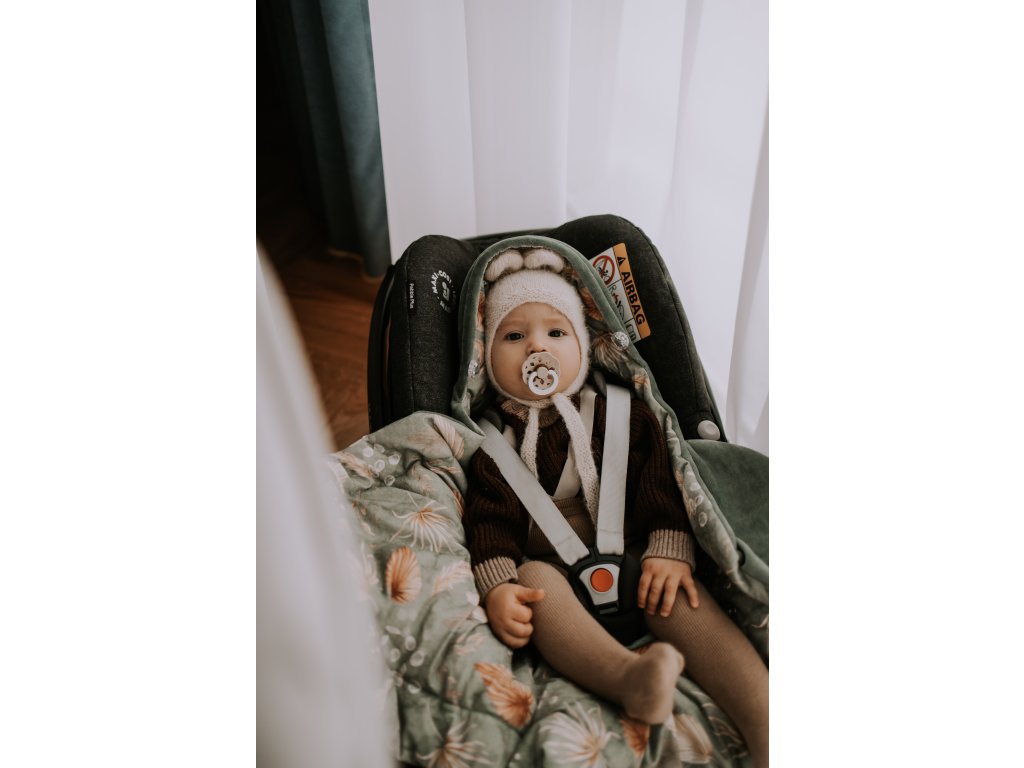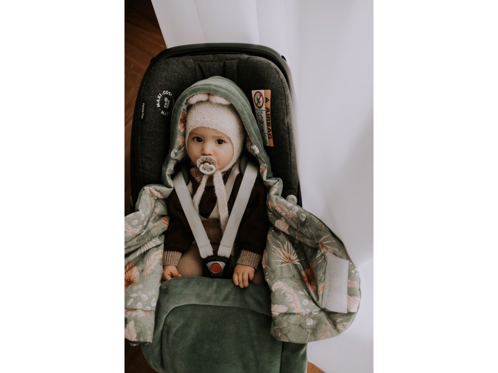 A Bohemian Green biztonsági öv nyílásaival ellátott babatakaró, pólya és autósülés hálózsák nélkülözhetetlen segédeszköz a babával való utazáshoz. A takarónak köszönhetően a baba mindig melegben lesz a szabadban, és nem fog izzadni az autóban. Univerzális méret minden autósüléshez.