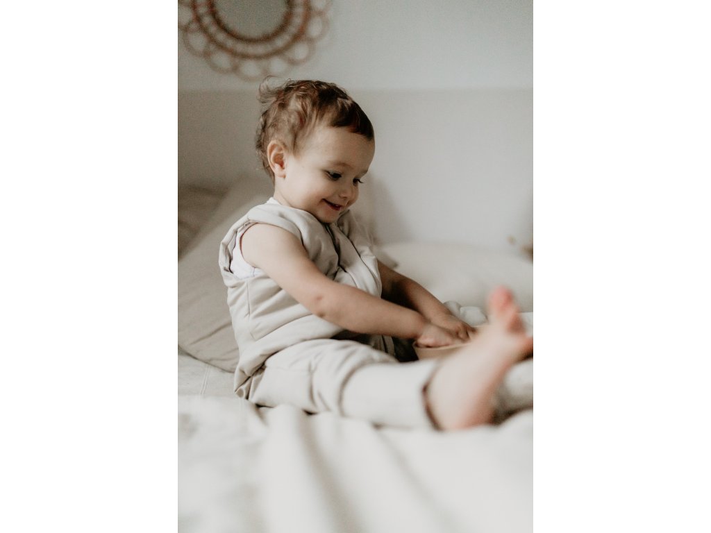 A hálózsák kézzel varrt puha pamutból készült, 8% hozzáadott elasztánnal. Ennek köszönhetően rugalmas és valóban teljes mozgásszabadságot biztosít a gyermekeknek. A hálózsákban a nagyobb gyerekek is kényelmesen ülhetnek , és élvezhetik például egy kedvenc mese olvasását lefekvés előtt.
