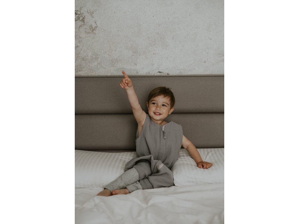 Muszlin hálózsák nadrággal Sleepee Grey (M-es méret) kényelmes, légáteresztő és teljes mozgásszabadságot biztosít az alvás teljes ideje alatt és az esti rituálék során. Egyik legnagyobb bestsellerünk most ebben a nagyszerű muszlin változatban is!