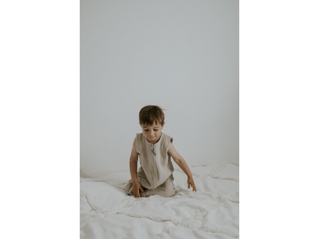 Muszlin hálózsák nadrággal Sleepee Grey (méret: M) tökéletes választás kisgyermekek és kisebb óvodás gyermekek számára tavaszra, nyárra vagy egész éves zsáként a melegebb szobában való alváshoz. Teljes mozgásszabadságot biztosít alvás közben, ugyanakkor a gyermek éjszaka nem takarózik ki, és nem áll fenn a túlmelegedés veszélye. A nadrág szárán takarók találhatók, amelyek áthúzhatók a gyermek lábfején. A muszlin anyag légáteresztő és könnyű. Két méretben kapható: 1-2 éves és 3-4 éves.