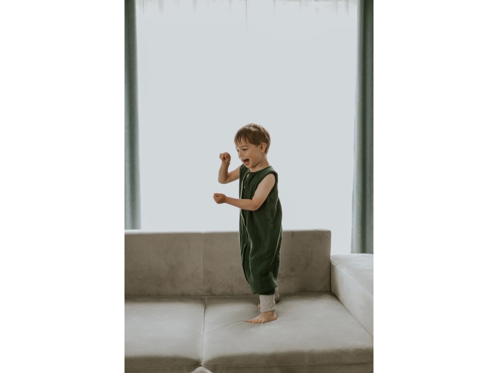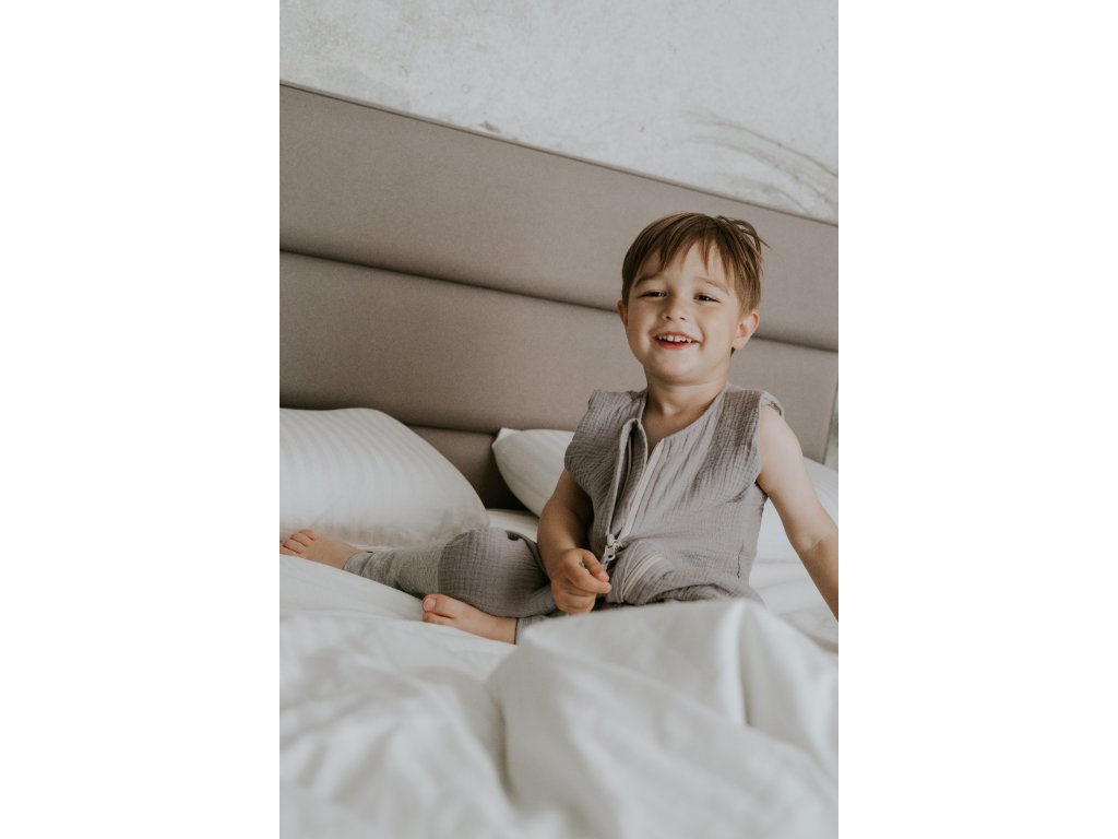 Muszlin hálózsák lábakkal Sleepee Sand (méret. S) tökéletes választás kisgyermekek és kisebb óvodáskorú gyermekek számára tavaszra, nyárra, vagy egész éves zsáként melegebb szobában alváshoz. Teljes mozgásszabadságot biztosít alvás közben, ugyanakkor a gyermek éjszaka nem takarózik ki, és nem áll fenn a túlmelegedés veszélye. A nadrág szárán takarók találhatók, amelyek áthúzhatók a gyermek lábfején. A muszlin anyag légáteresztő és könnyű. Két méretben kapható: 1-2 éves és 3-4 éves.