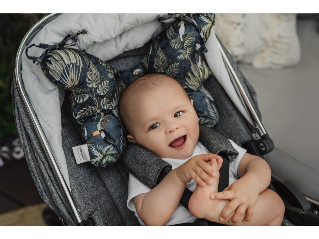 A párnát ajánljuk babakocsival való közlekedéshez egyenetlen felületen, mert jelentősen elnyeli a fej rázkódását és segít a babának nyugodtan és zavartalanul aludni.