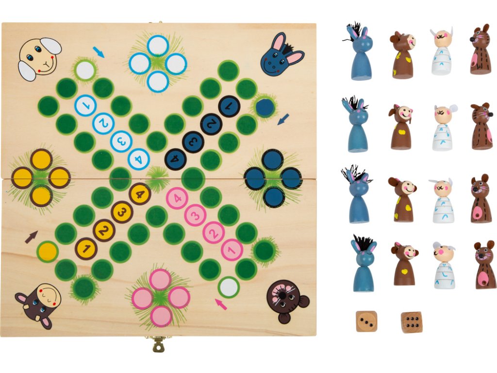 Ki nevet a végén! Farma Klasszikus társasjáték farmon élő állatokkal! Tanítsd meg a gyerekeknek a "Ki nevet a végén?" játékot ezzel a gyönyörű fa kivitelezéssel. A klasszikus bábuk helyett a csomagban fából készült állatfigurákat találsz – tehénke, szamár, bárány és egér. Csak dobd a kockát, és kezdődhet a játék.A gyerekek megtanulnak társasjátékokat játszani Megtanulják betartani a szabályokat, türelmesnek lenni, nyerni és veszíteni is. A Gazdálkodj okosan társasjáték körülbelül 4 éves kortól ajánlott. Ennek a kreatív fa verziónak köszönhetően igazán élvezni fogják a játékot.