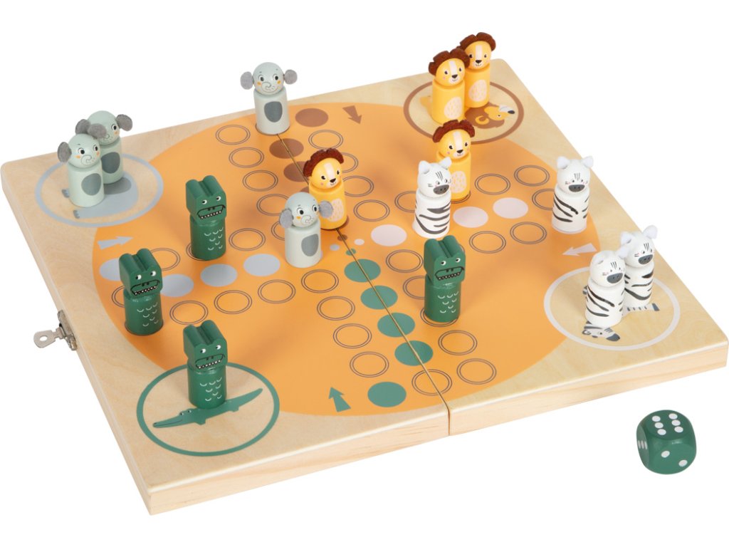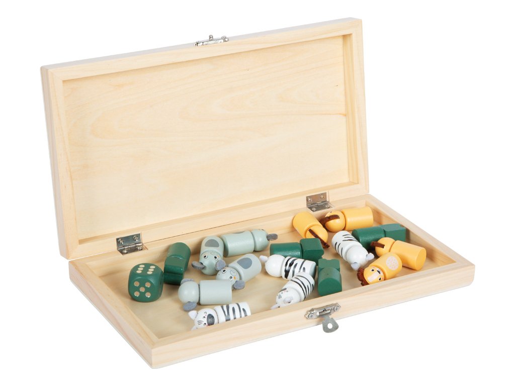 Ki nevet a végén Szafari 4 játékos részére Klasszikus társasjáték vidám szafari állatokkal Éld át a klasszikus családi játékot egy teljesen új stílusban! A Safari társasjáték vidám szafari állatokat – zebrát, krokodilt, elefántot és oroszlánt – hoz a közkedvelt társasjátékba. A filcből készült, aranyos részletekkel ellátott figurák még szórakoztatóbbá teszik a játékot gyerekek és felnőttek számára egyaránt. A játék ideális a finommotoros készségek fejlesztésére és a számolás tanulására, miközben sok örömet okoz a győzelem és izgalmat az akadályok leküzdése a cél felé vezető úton. A praktikus, összecsukható játéktábla egyben tárolódobozként is szolgál a figurák és a kocka számára, így tökéletes játék utazáshoz. A kiváló minőségű fa megmunkálás, a modern színek és a tartós anyagok teszik ezt a szafari verziót nagyszerű kiegészítővé minden játékgyűjteményben.