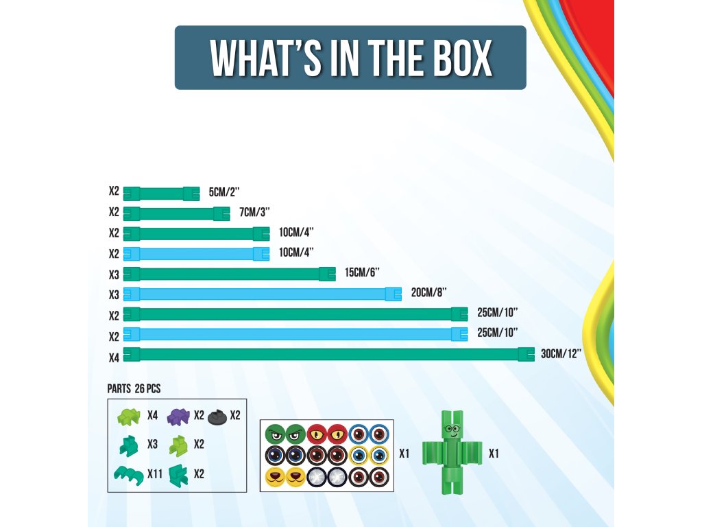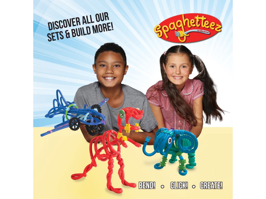Spaghetteez kreatív építőkészlet 48 db. Illeszd össze, hajlítsd és alkoss figurákat saját fantáziád szerint! A belga Clics Toys márka Spaghetteez 48 db-os kreatív és rugalmas építőkészlete korlátlan alkotási lehetőséget kínál a gyermekeknek, és lehetővé teszi számukra, hogy a legkülönfélébb 2D-s és 3D-s figurákat hozzák létre. A csomag különböző hosszúságú színes és rugalmas elemeket tartalmaz, amelyek spagettire emlékeztetnek, valamint további szerkezeti elemeket és útmutatót a csodálatos modellek létrehozásához. A speciális, pattintós rendszernek köszönhetően a darabok könnyen összekapcsolhatók - csak össze kell őket kapcsolni, elforgatni, és máris hajlíthatod és formázhatod őket.A Spaghetteez építőkészlet szórakozást nyújt, fejleszt és megnyugtat. Ez a kreatív építőkészlet nemcsak játék, hanem egy szenzoros és stresszoldó eszköz is, amely támogatja a finommotorikát és fejleszti a kreativitást. A gyerekek a leírás vagy saját fantáziájuk szerint különféle modelleket építhetnek, például egy aranyos kis elefántot vagy más csodálatos alkotásokat, amelyekkel aztán játszhatnak. A rugalmas darabokkal való munka segít a gyerekeknek megnyugodni és csökkenteni a stresszt. A Spaghetteez-t gyakran használják oktatási eszközként, fidget toy-ként vagy kreatív készletként. Ez az építőkészlet 4 éves kortól alkalmas gyermekek számára, és tökéletes ajándék a kis alkotók számára.