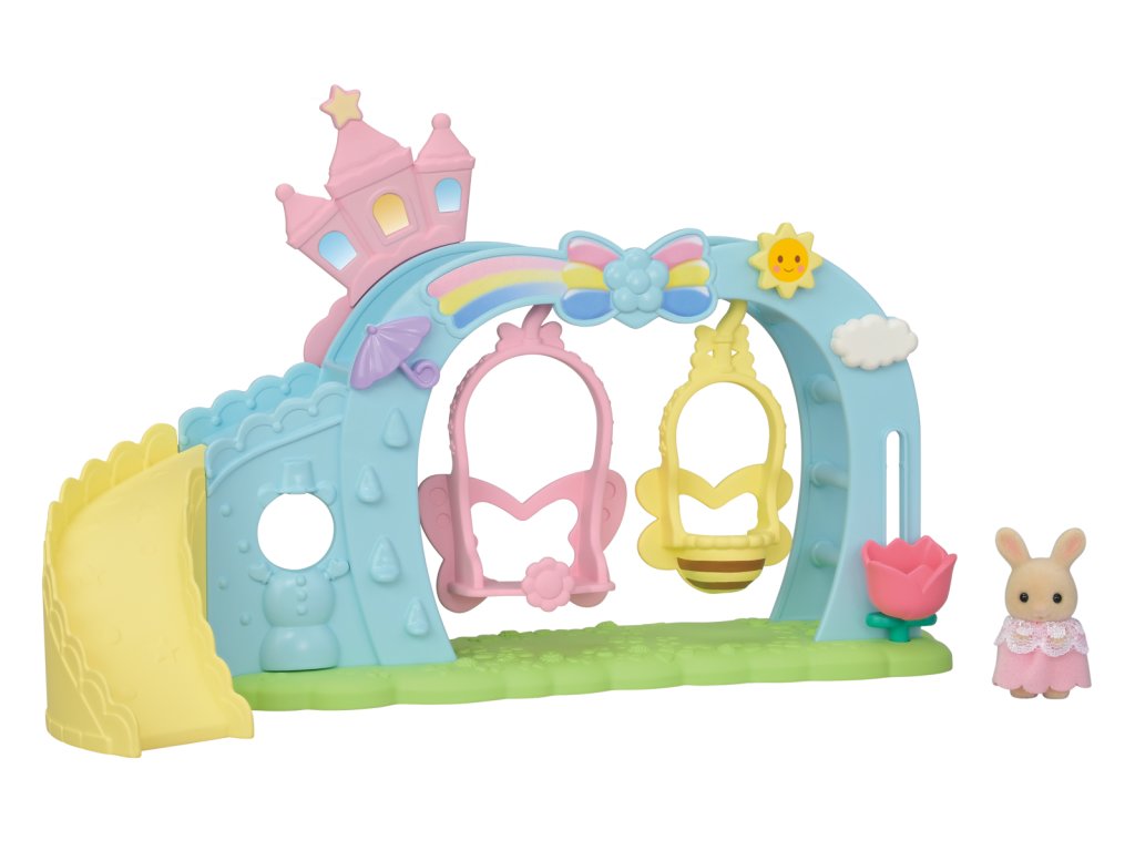 Az óvodai szivárványhintakészlet hintákat és egy csúszdát tartalmaz, amelyek ideálisak az óvodai figurák számára. Isla baba, a Tej nyúl család tagja érkezik vele. A hinták pillangóként és méhecskeként néznek ki, amikor a gyerekek hintáznak. Egy másik figura fel-le utazhat a tulipán felvonón. A babák arca olyan aranyosnak tűnik a képen, amikor a bájos csúszda részen pózolnak a hóember fotózáshoz. A hintakészlet tartalmaz: 1 x tej nyúl figura, 1 x fő egység, 1 x csúszda, 1 x pillangó hinta, 1 x méhecske hinta, 1 x torony dekoráció, 1 x tulipán felvonó. Csomag mérete: 21x15x6,5cm. Életkor: 3+