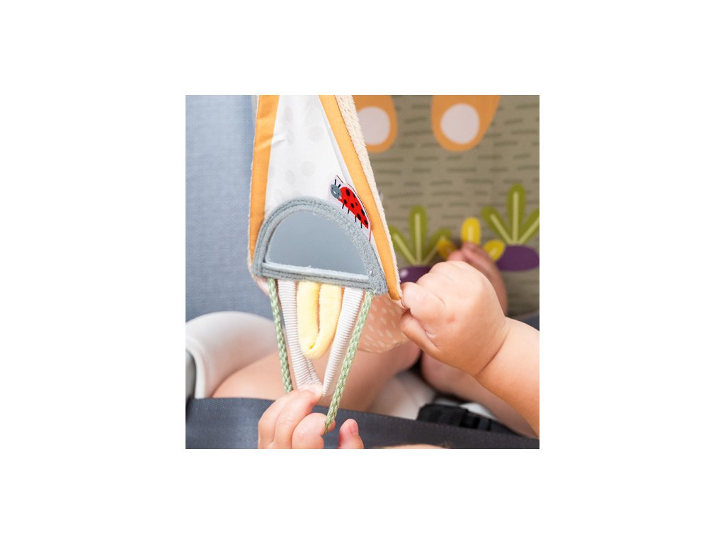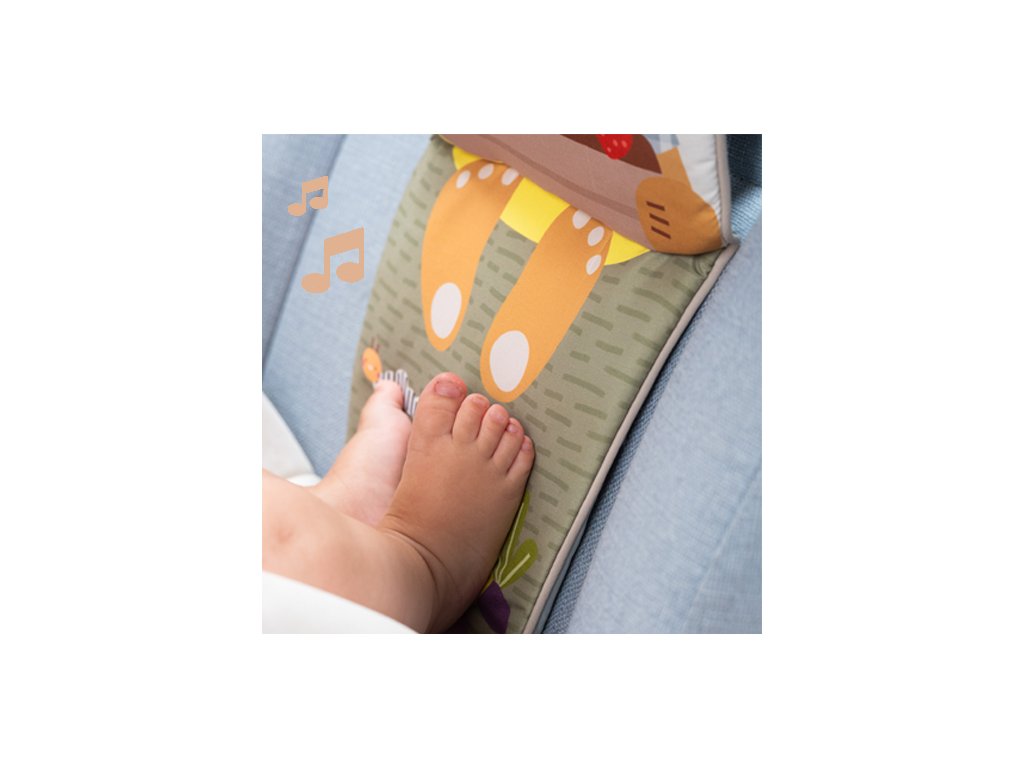 A pultot a gyerekülés mögötti üléshez rögzíti, az autóval ellentétes irányban. A zene és a fények aktiválásához a gyermek a lábacskáival rúgja a pult alsó részét. Így a gyermek megtanulja az ok-okozati összefüggéseket, és fejleszti motorikus készségeit. A változatos tevékenységek és textúrák, beleértve a biztonságos tükröt, felfedezésre csábítanak, és serkentik a gyermek érzékeinek fejlődését.