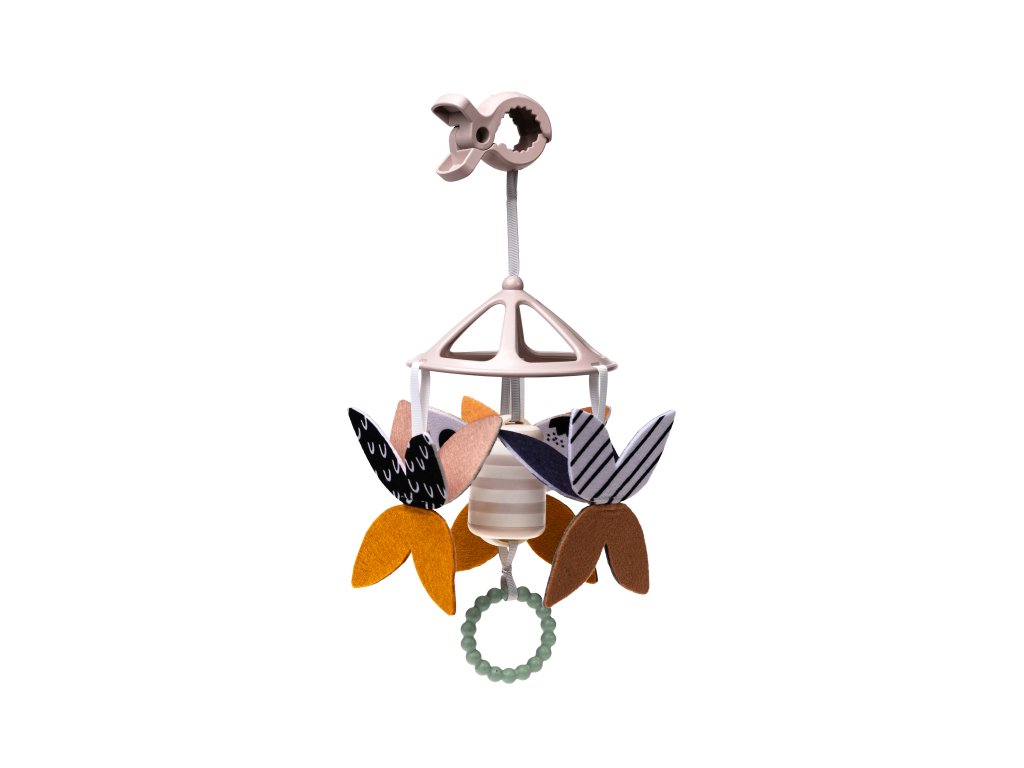 - Pillangó csilingelő: A csengővel és kontrasztos színű pillangókkal ellátott forgó vizuális stimulációt és finom hanghatásokat kínál, ezáltal támogatja az érzelmi fejlődést, valamint az ok-okozati összefüggések megértését.