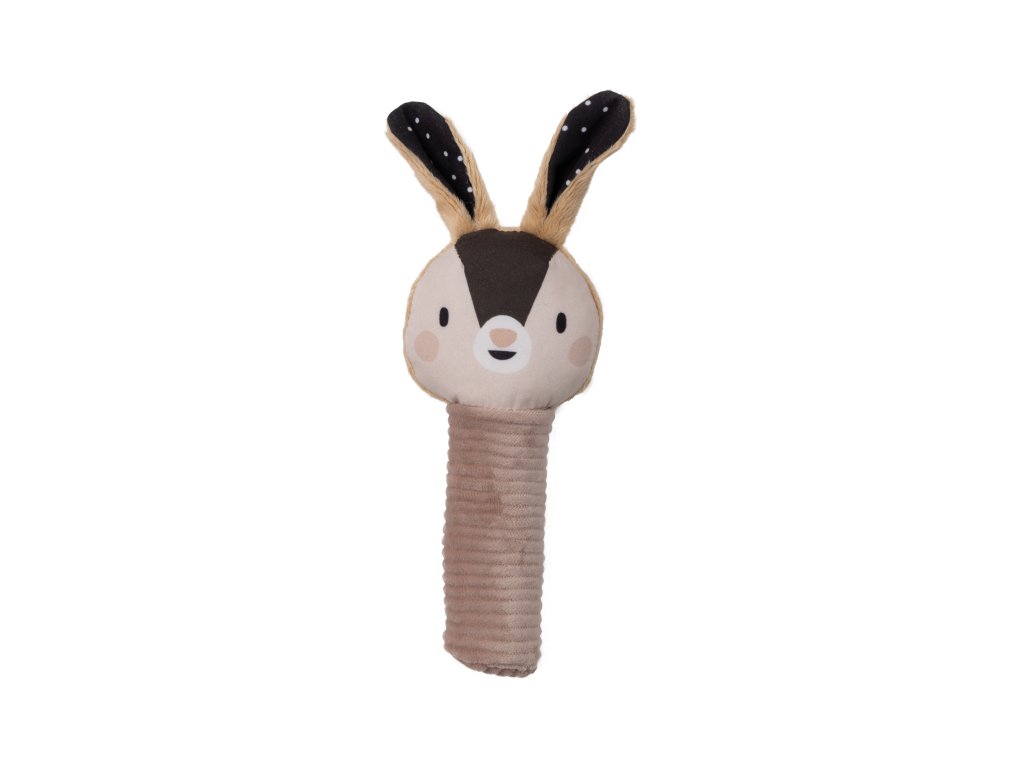 - Sípcsörgő nyuszi: A sípoló játék nyuszi fejjel és susogó fülekkel további érzékszervi ingereket biztosít, és hozzájárul az ok-okozati összefüggések megértéséhez.