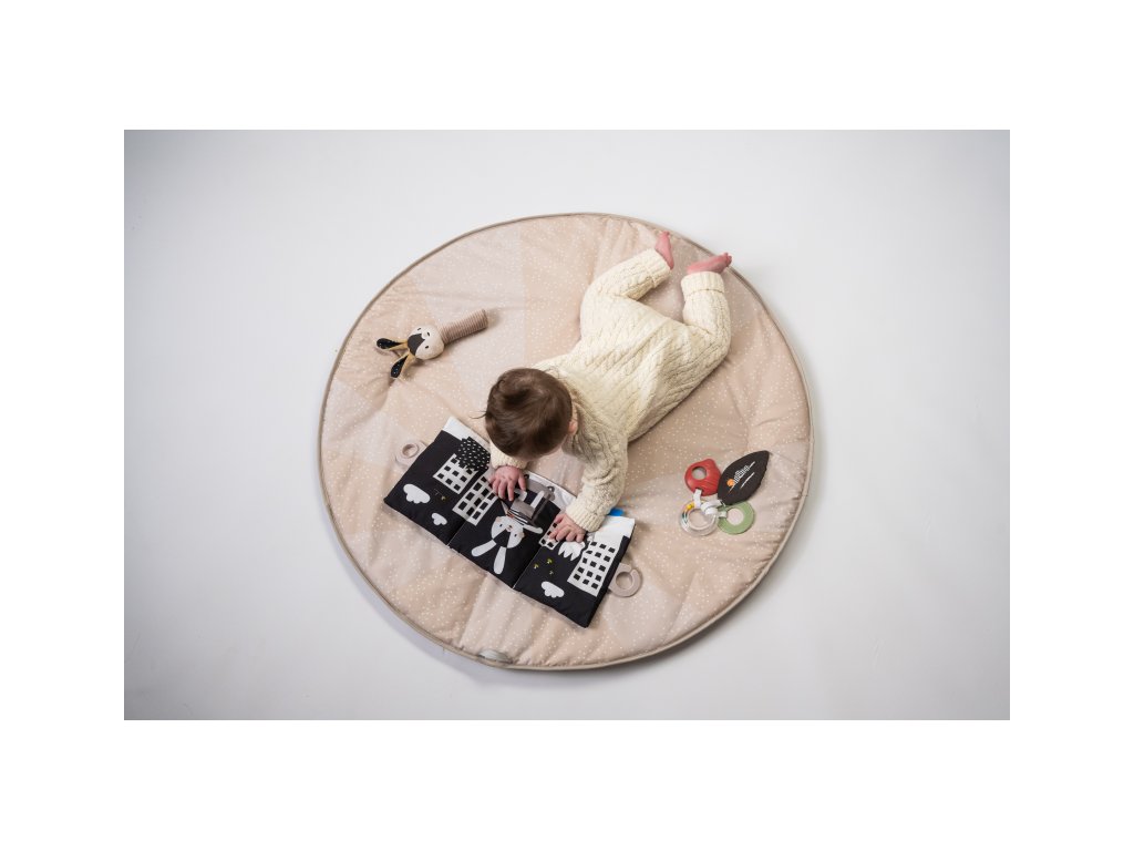 - Haskönyv: A fekete-fehér, susogó könyv az érzékszervek stimulálására ideális a hason töltött játékidőhöz, támogatja a látás és a hallás fejlődését.