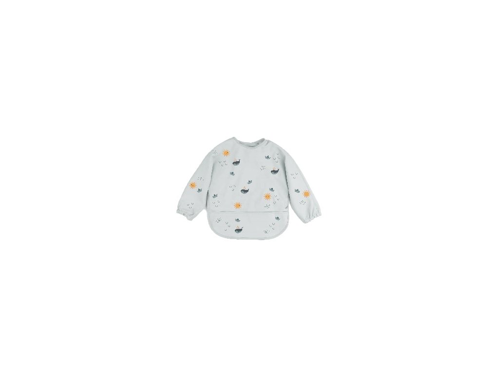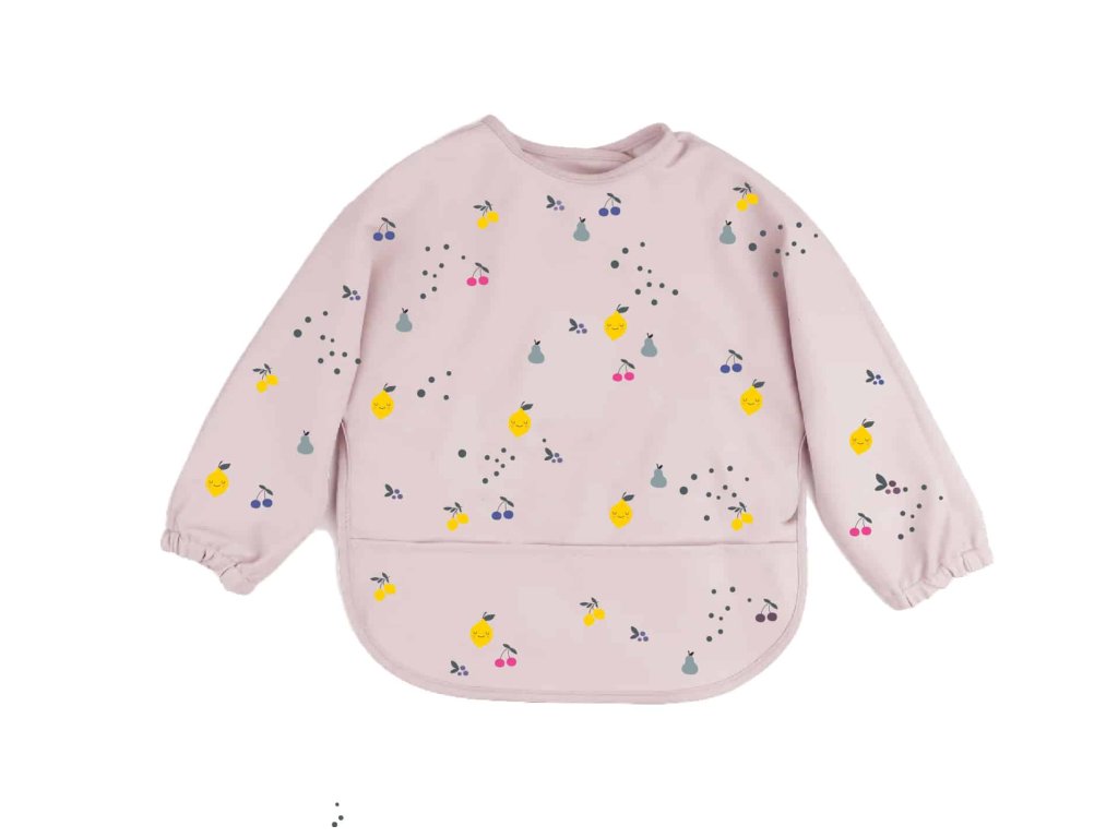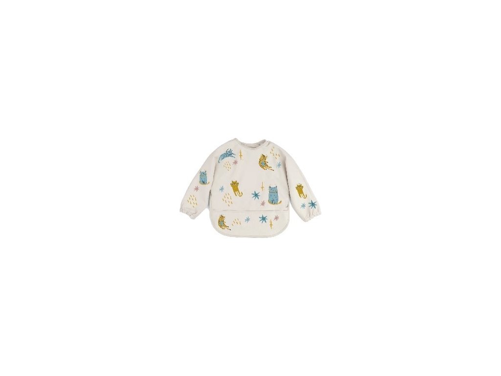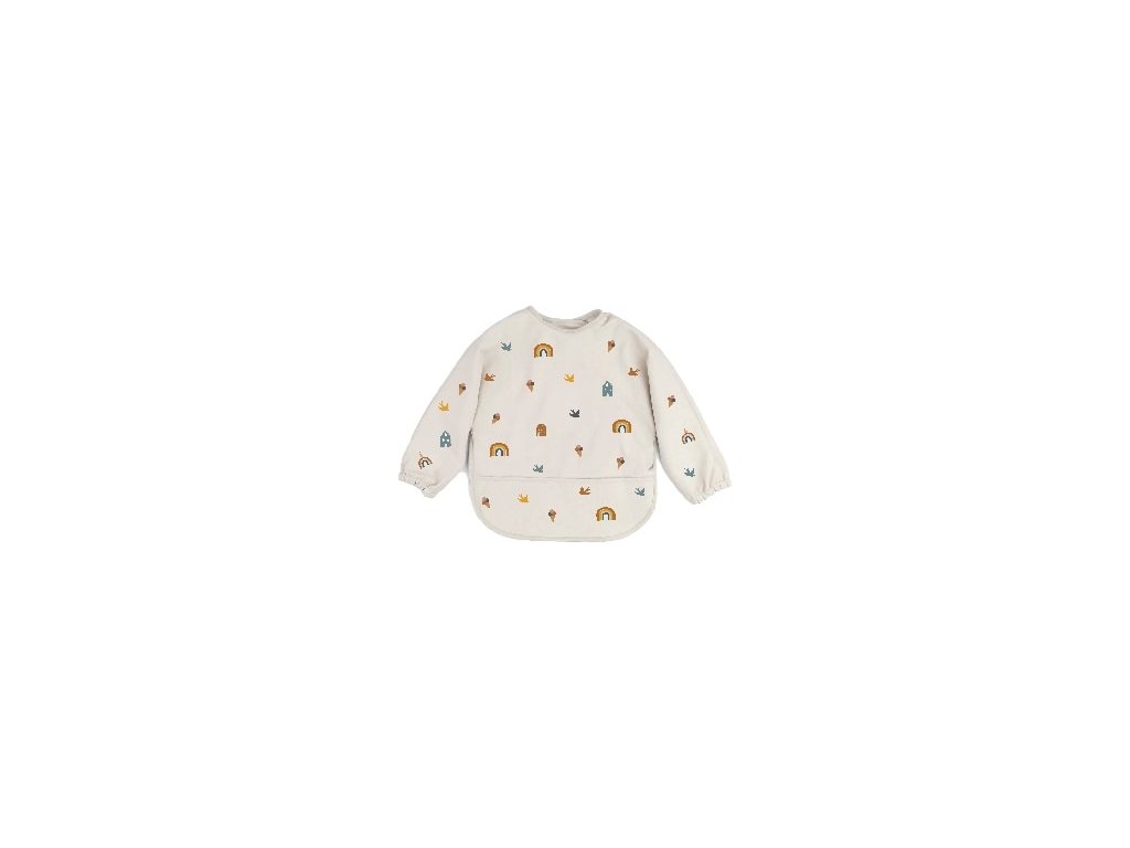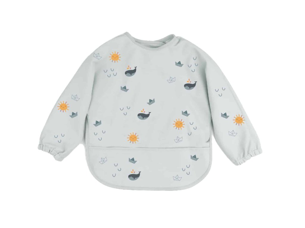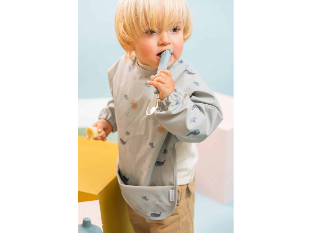 Vízálló, hosszú ujjú előke zsebbel az étel felfogásához.