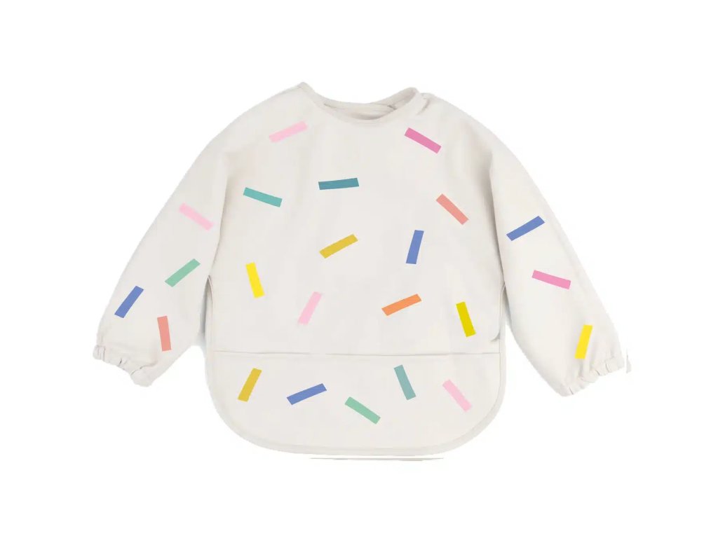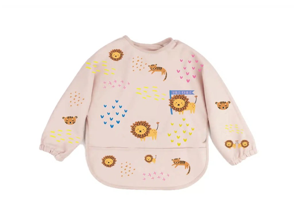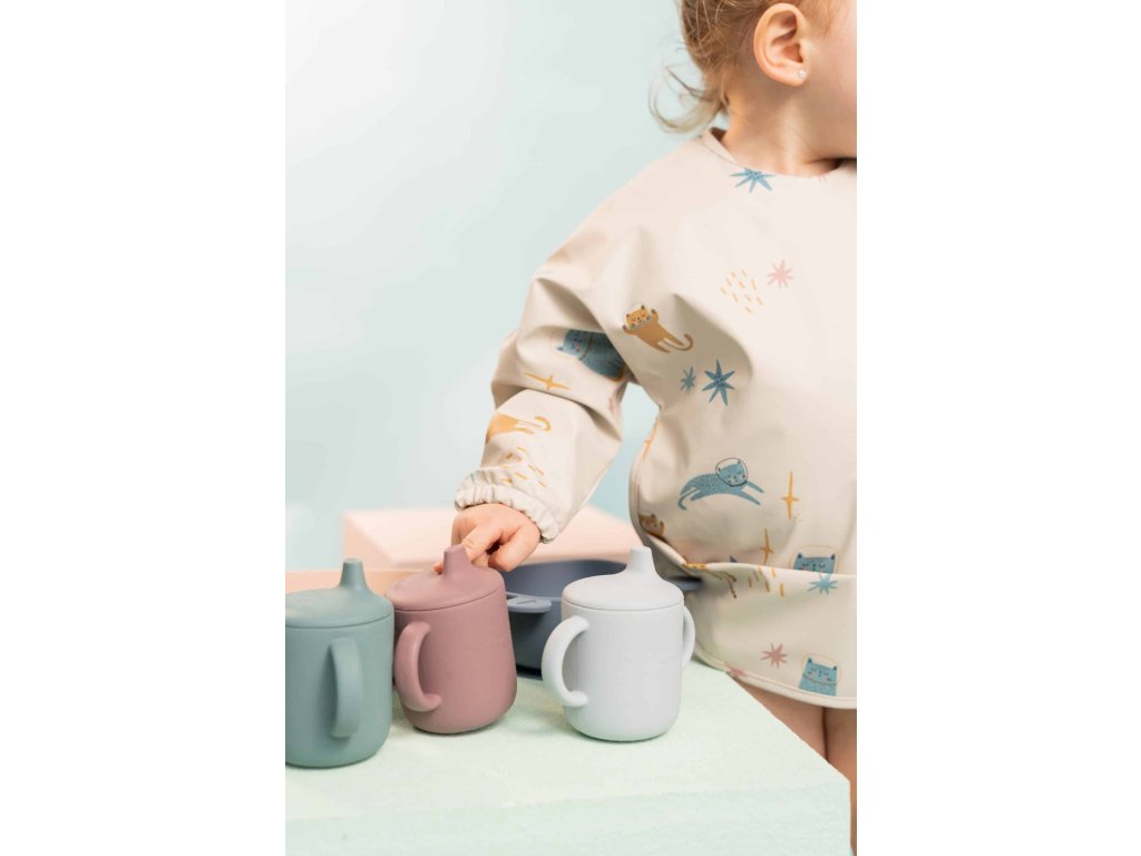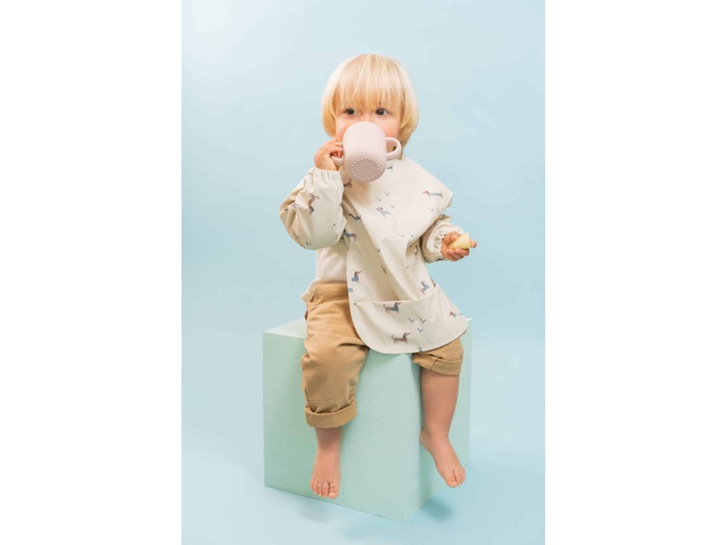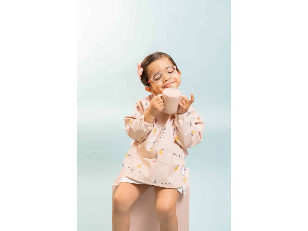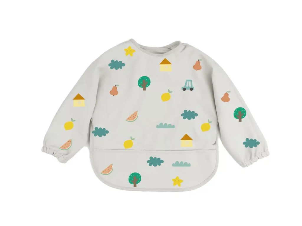 Vízálló, hosszú ujjú előke zsebbel az étel felfogásához.