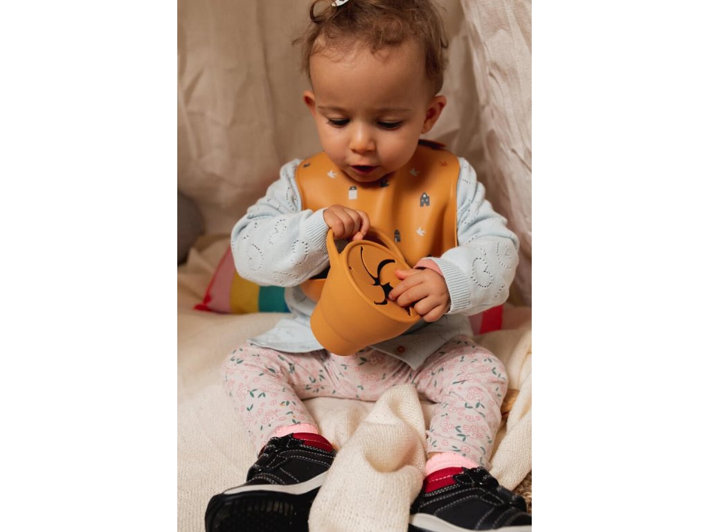 A szilikon előke biztonságos választás gyermeke egészségére. 100%-ban minőségi, tanúsított LFGB élelmiszeripari szilikonból készült, és nem tartalmaz műanyagokat.