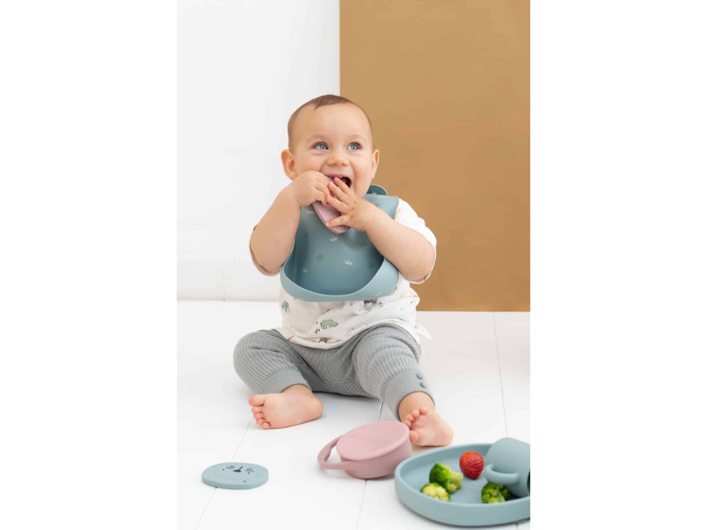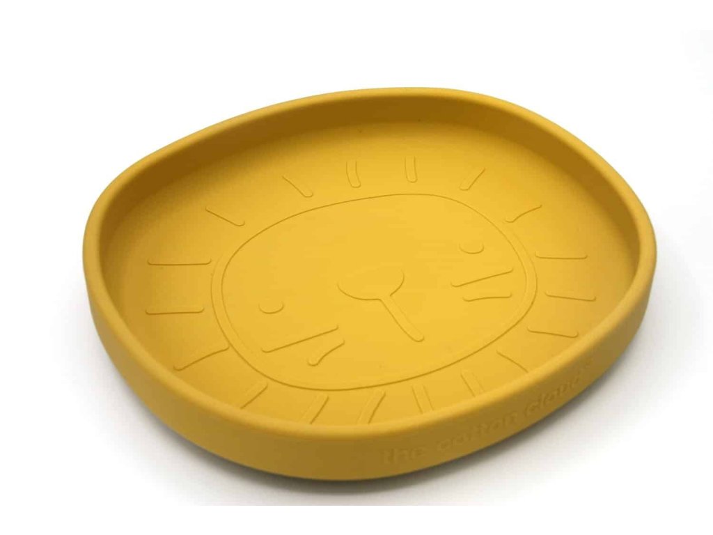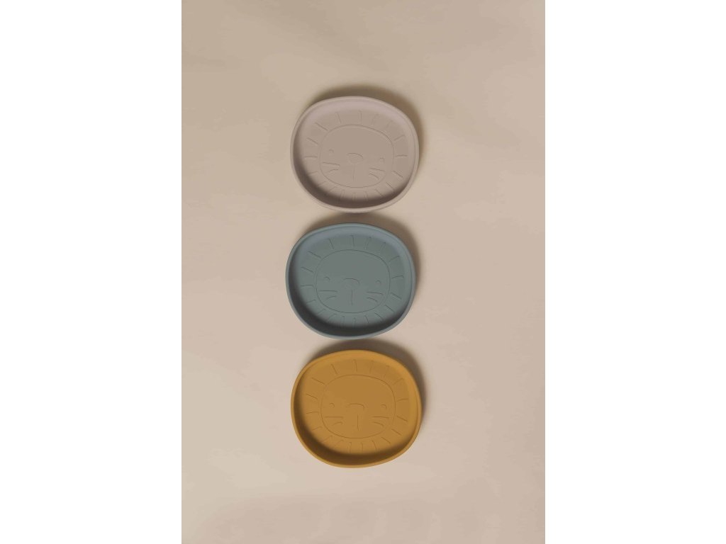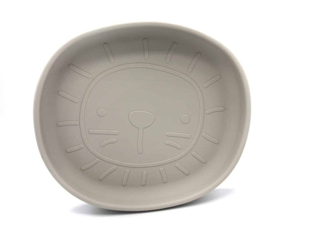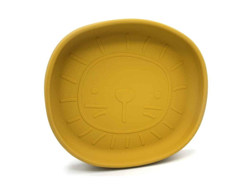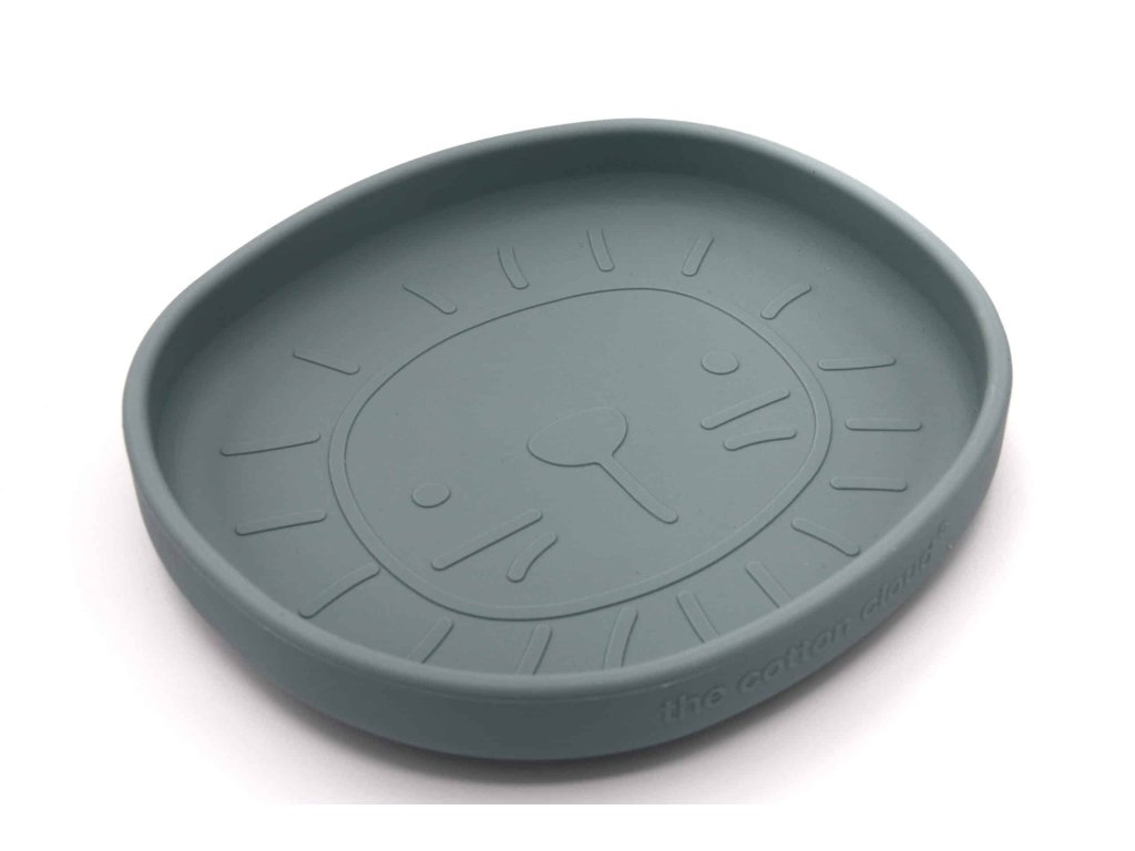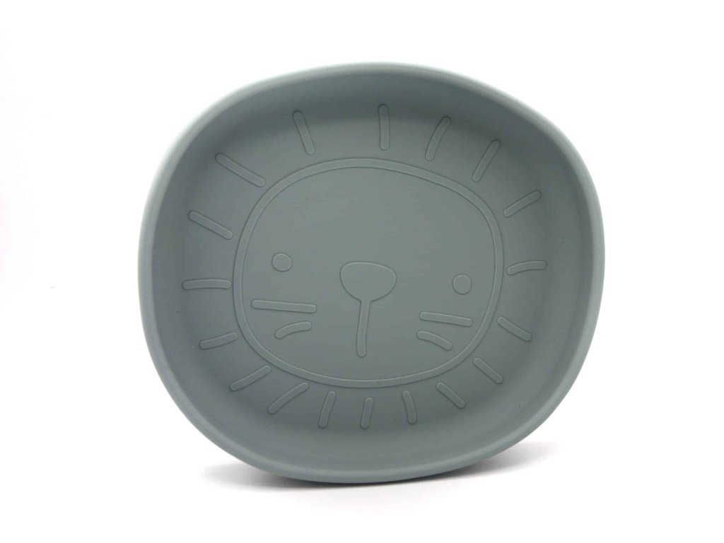 Szilikon tányér tapadókoronggal Jade színben, oroszlán mintával.