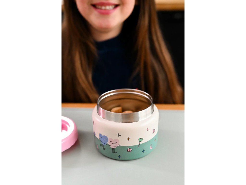 Új gyermek termosz ételtároló – ideális megoldás arra, hogy gyermeke étele és uzsonnája útközben is ideális hőmérsékleten maradjon. A dupla falú szigetelésnek köszönhetően az étel akár 6 órán át meleg, az uzsonna pedig akár 12 órán át hideg marad.