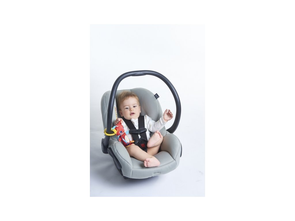 A műanyag gyűrűnek köszönhetően a játék felakasztható kiságyra, autósülésre vagy babakocsira.