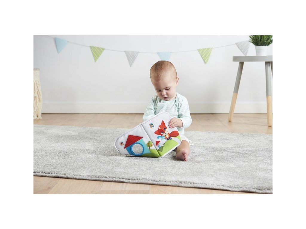 A magas kontrasztú színekben pompázó, gyönyörű állatképekkel teli textilkönyv segíti a gyermek látásának fejlődését. Változatos tevékenységeket és textúrákat kínál a gyermek számára a felfedezéshez, beleértve egy rágókát is, amely segít a gyermeknek az első fogak kibújásakor.