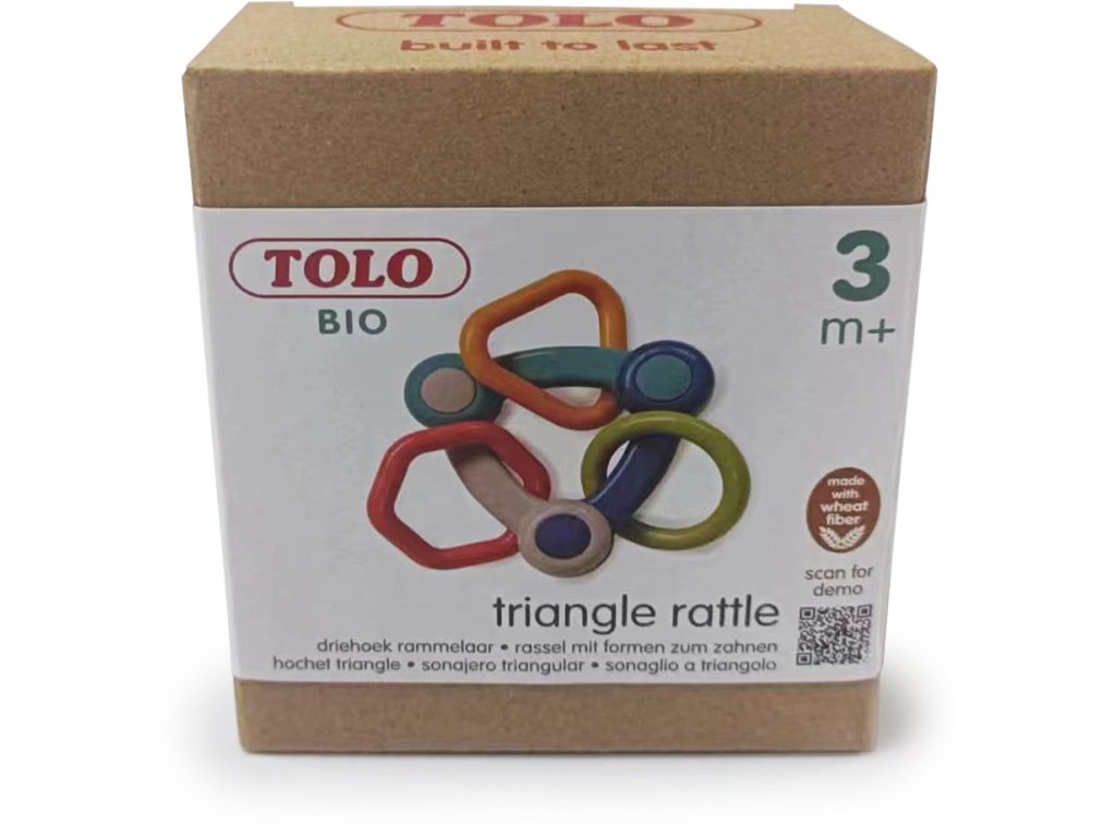 A Tolo csörgő Háromszög medálokkal a legkisebb babák számára készült játék, amely formájával és színeivel vonzza a figyelmüket. Mozgás közben kellemes hangot ad, ami fejleszti a baba hallását. A csörgőn lévő medálok különböző formájúak, ami elősegíti a tapintás fejlődését.