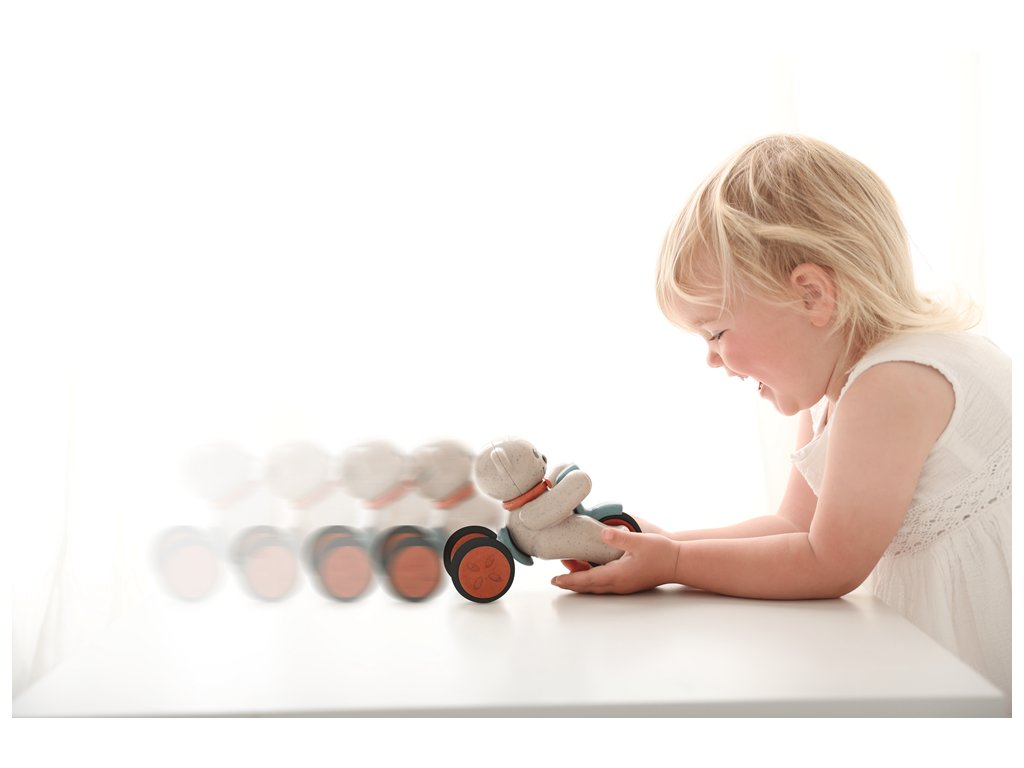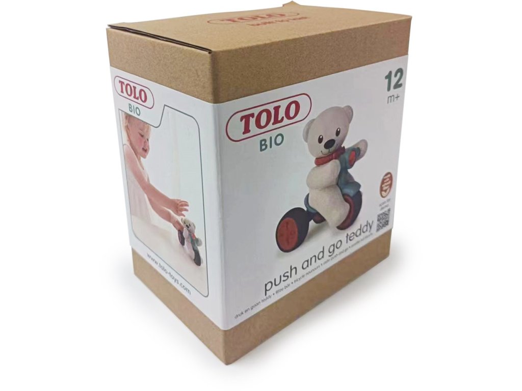 A Tolo Mackó triciklin serkenti a kéz és a szem koordinációját, és támogatja a gyermekek nagymotoros készségeit. A fej megnyomásával és a medve mozgásának követésével a gyerekek megtanulják az ok-okozati összefüggés elvét. A játék komposztálható BIO műanyagból készült, búzából, amely biztonságos a legkisebb gyermekek számára.