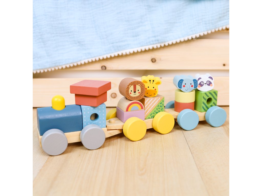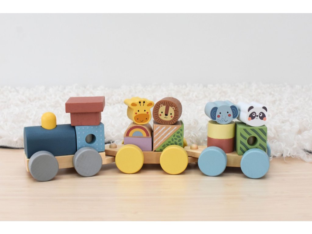 Fa vonat Állatok Vonat, építőkészlet és egymásra rakás egyben A Tooky Toy összecsukható fa vonat minden vonat-, autó- és építőkészlet-rajongót megörvendeztet. A készlet tartalmaz egy fa mozdonyt és két járművet, amelyekre a gyerekek tetszés szerint 13 különböző elemet helyezhetnek fel, némelyik állat, mások különböző formák formájában. A mozdony és a kocsik szépen összekapcsolhatók.Már 18 hónapos kortól alkalmas a gyermekek számára. A gyermekek a vonattal való játék során fejlesztik finommotoros készségeiket, szem-kéz koordinációjukat és fejlesztik képzelőerejüket. Megtanulják a színeket, formákat és fejlesztik szókincsüket is. A egymásra rakható vonat fenntartható erdőgazdálkodásból származó fából készült, nem mérgező festékekkel van festve, és biztonságos a gyermekek számára.
