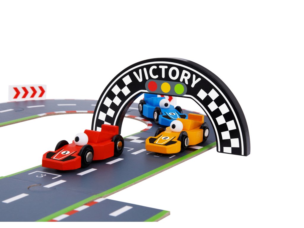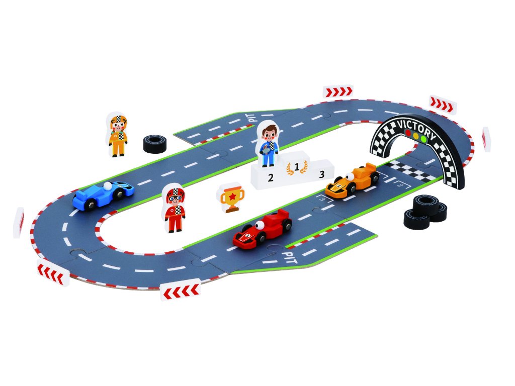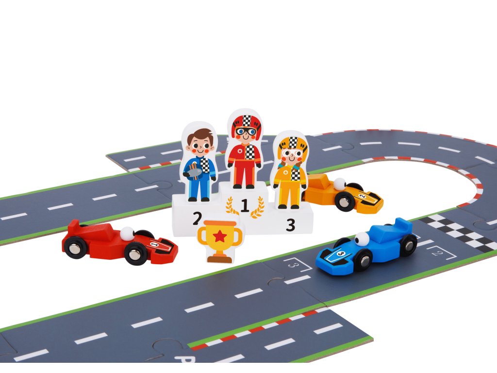 Formula Versenypálya Formula Versenypálya a kis Forma-rajongóknak Formula Versenypálya a sebesség és a versenyzés minden kis rajongójának. A játék során a gyerekek elsajátítják az alapvető versenyzési és vezetési készségeket. Kezdetben a kis versenyzők közösen rakhatják össze a papír versenypályát, ami fejleszti kreatív gondolkodásukat és együttműködésüket.Készülj fel a versenyre, és szerezd meg a győztes kupát A játék mindent tartalmaz, ami egy nagyszerű verseny létrehozásához szükséges. A készlet három versenyautót, három versenyzőt és egy győztes kupát tartalmaz. Játssz, versenyezz a győztes kupáért, és élvezd a felejthetetlen versenyeket.