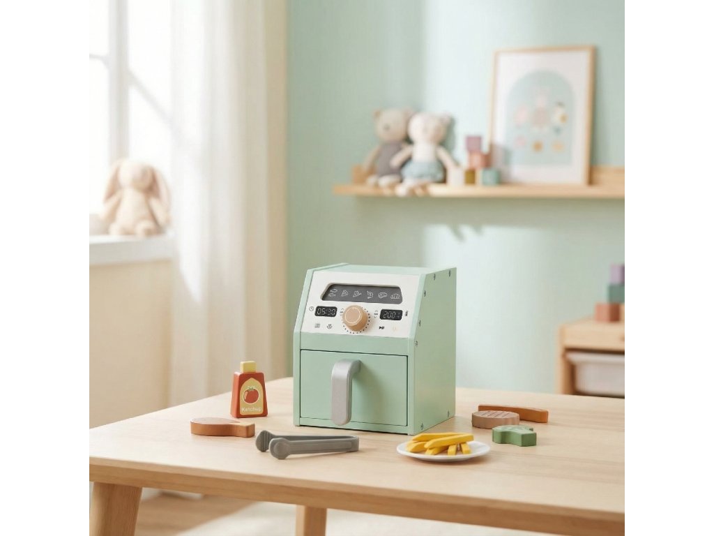 FritőzA gyerekeknek készült fa fritőzbemutató főzős játékA kis szakácsok végre „kisüthetik“ kedvenc sültkrumplijukat! Ez a gyerekeknek készült fa fritőz nagyszerű kiegészítője minden gyerekkonyhának, és újfajta fantáziát visz a játékba. A gyerekek utánozhatják az éttermi főzést, fejleszthetik képzeletüket és ügyességüket, megtanulhatnak együttműködni és kommunikálni másokkal közös főzés közben.Játék, ahol a gyerekek kis séffé válnakvalósághű megjelenés funkcionális részletekkelsegíti a kreativitást, a képzeletet és a logikus gondolkodástfejleszti a finommotorikát és a szociális készségeket közös játék soránminőségi fából készült, biztonságos felülettelideális kiegészítője a gyerekkonyhának, vagy önálló játékkénttökéletes ajándék a kis szakácsoknak