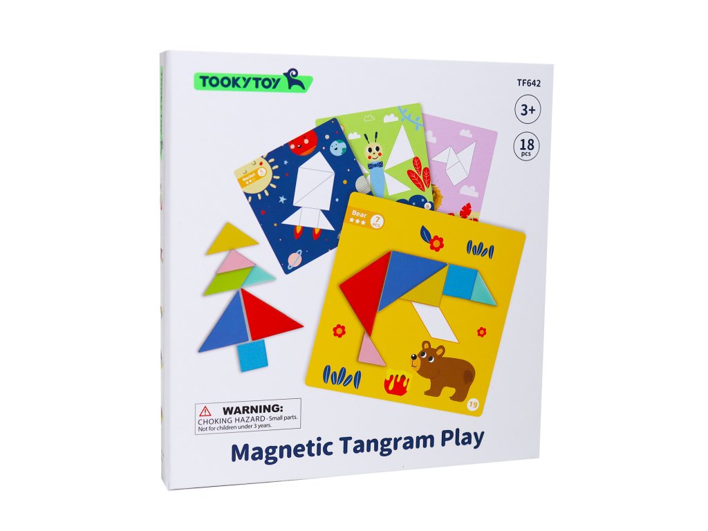 Mágneses tangram Állíts össze egy állatot geometriai formákból! A mágneses doboz 20 sablont tartalmaz képekkel, amelyeket a gyerekek geometriai formájú mágnesek segítségével hoznak létre. Építhetnek pillangót, macit vagy rakétát és másokat. A feladatokat tartalmazó könyv 3 nehézségi szintre van osztva. A gyerekek fejlesztik a logikus gondolkodást, gyakorolják a szem-kéz koordinációt, a finommotorikát, tanulják a színeket és a formákat. Játék után mindent elpakolnak a mágneses dobozba. Minden kiváló minőségű anyagból készült, figyelembe véve a környezetet és a gyermek biztonságát.