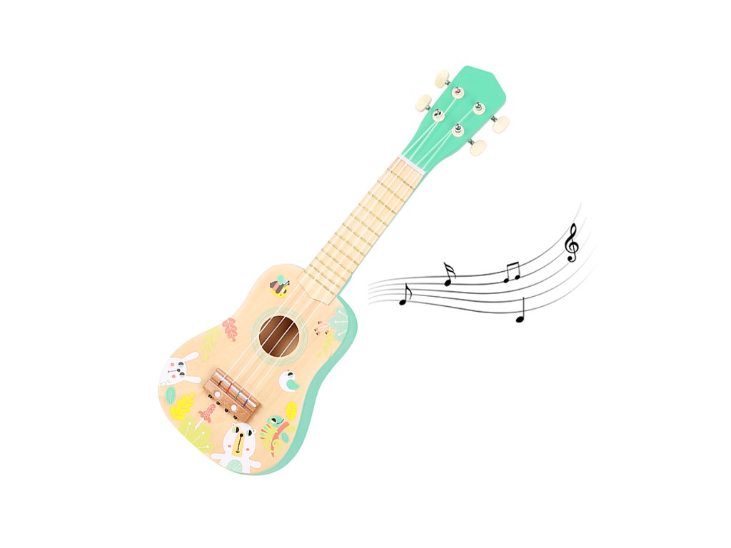 Ukulele A gyerekek az ukulele segítségével kis zenészekké válnak. Támogassa a gyermekek zene iránti érdeklődését ezzel a csodálatos, finom pasztellszínekben pompázó, gyönyörű állatmotívumokkal díszített ukulele segítségével. Méretének köszönhetően tökéletesen illeszkedik a gyermekek kezébe.Fejlesztik az érzékszervi érzékelést. Képzik a zenei hallásukat, gyakorolják a finommotorikát, lehetőségük van kifejezni magukat és megszeretik a zenét. Az ukulele-n való játék ráadásul felkelti az érdeklődést más hangszerek iránt is. Talán az Ön irányításával megtanulnak néhány alapvető akkordot is.