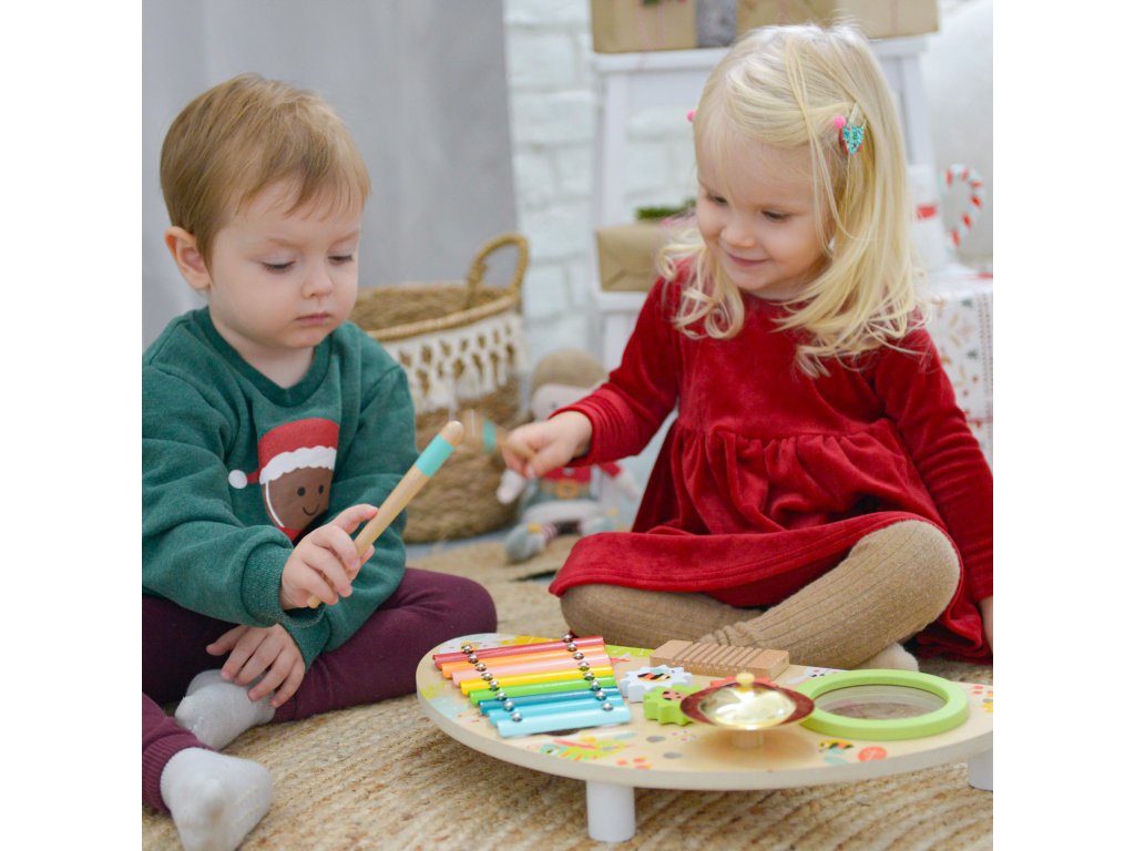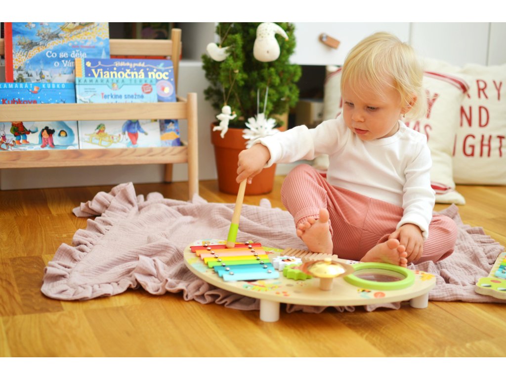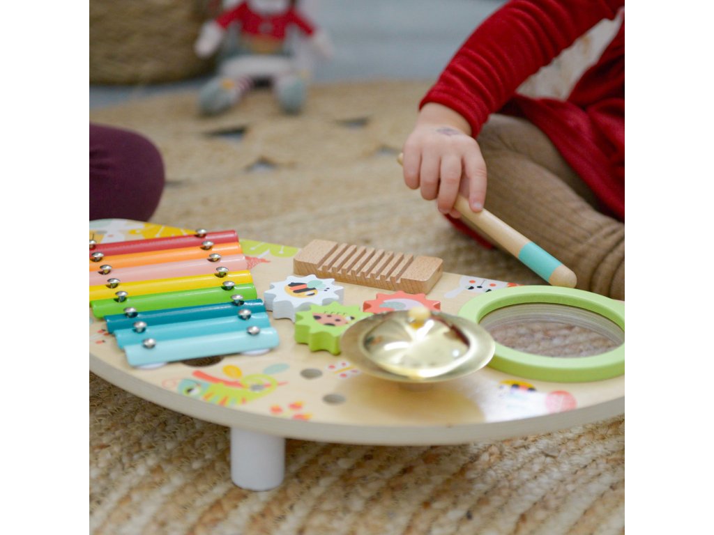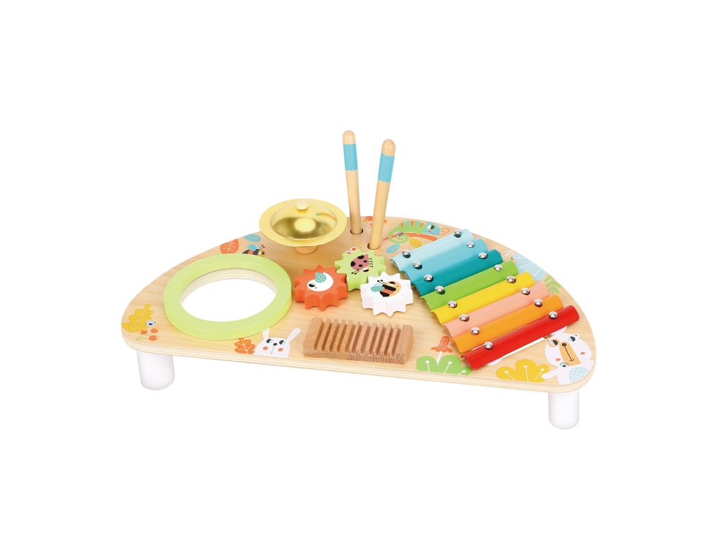 Zenepult Gyermekekből kis zenészek lesznek. A gyönyörűen kidolgozott, többfunkciós, élénk színű zenei pult minden kisgyermeket lenyűgöz. A kicsik találnak rajta xilofont, dobot, cintányérokat és két ütőt. Kíváncsi kezek számára apró fogaskerekek is találhatók.Ébressze fel bennük a zene szeretetét. Fejlesztik a zenei hallásukat és más szenzoros érzékelésüket. Gyakorolják a finommotorikát és a mozgáskoordinációt is. A pult nagyon sokáig szórakoztatja őket. Minőségi anyagokból és ártalmatlan festékekből készült. Csak helyezze egy sík felületre, és kezdődhet a zenei produkció.