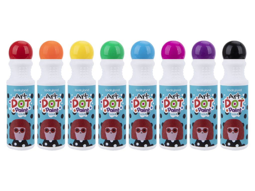 Festékek tubusban Mosható 8 db színezővel Biztonságos festékek a legkisebbeknek A Tookyland tubusos festékei habszivacs applikátorral nagyszerűek a pöttyözéshez, azaz a Pontfestéshez a legkisebb gyerekeknek, akik még csak most kezdik a létrehozást. A lapos habszivacs heggyel színes pöttyöket nyomnak a papírra. Ráteszi a tubust a papírra, megnyomja, és a pont a világon van. A tapasztaltabb művészek vonalakat is festhetnek a tubusos festékekkel. Nem kell vizet adni a tubushoz, minden készen áll a pöttyözésre, és a festékek sokáig kitartanak.A 2 az 1-ben csomag 8 színt tartalmaz tubusban a pöttyözéshezSzínezők 30 lappalGyerekeknek készült fogantyú Élénk vízfestékek, melyek a gyerekeknek is tetszeni fognak. Bármilyen művészeti igényhez, játékos tanuláshoz vagy művészeti szórakozáshoz használhatók gyermekpartikon. Közvetlenül a kisgyermekek számára készültek, hogy segítsenek nekik felfedezni és fejleszteni kreatív képességeiket, és támogassák a kreatív gondolkodást. Nem kell félni a színes ujjak és ruhák miatt, mert a festékek könnyen moshatók. Használat után csak tegye vissza a kupakot, hogy a festékek ne száradjanak ki. A Tookyland kreatív kellékei gyerekeknek biztonságosak és nem mérgezőek.