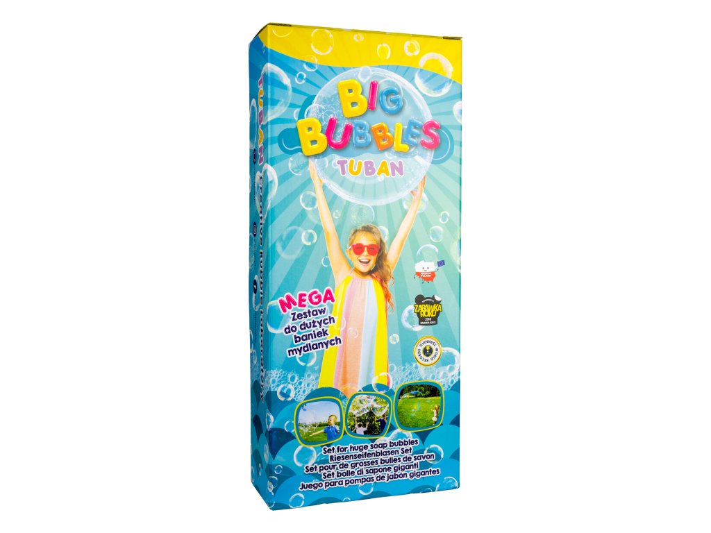 Mega készlet nagy buborékokhoz Varázslatos buborékok könnyedén! Készítsen hatalmas és rendkívül tartós buborékokat, amelyek elvarázsolják a gyerekeket és a felnőtteket egyaránt! Ez a mega készlet ideális születésnapi partikra, kerti partikra vagy családi összejövetelekre. A TUBAN márka buborékfújói egyedülállóak a folyadék egyedi összetételének köszönhetően, amely rendkívül tartós és nagy buborékokat hoz létre, amelyek hosszabb ideig lebegnek a levegőben, és gyönyörű színekben ragyognak. A speciális eszközöknek köszönhetően nemcsak a klasszikus buborékokat élvezheti, hanem a csodálatos buboréktunneleket és a látványos trükköket is.Mit tartalmaz a mega készlet?1 l szappanos buborék koncentrátum = 4 l használatra kész folyadék250 ml-es palack buborékfolyadékkalBuborékfújó karika (kb. 35 cm)Pálcikák zsinórral óriás buborékokhoz (hossza kb. 45 cm)2 műanyag karikaTál