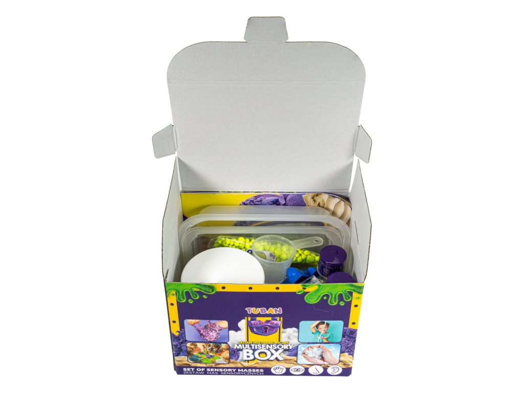 Multiszenzoros dobozFedezze fel az érintés, a színek és a szórakozás világát!Bemutatjuk a Multiszenzoros dobozt, amely ideális ajándék 6 éves kortól gyermekeknek, amely felébreszti az érzékeket, serkenti a kreativitást és fejleszti a finommotorikát. A különféle játékanyagoknak köszönhetően a gyerekek a felfedezésen és az alkotáson keresztül tanulnak – minden ,,anyagnak“ egyedi szerkezete, állaga és vizuális hatása van.Mit tartalmaz ez a doboz:színezett összetevők slime készítéséhez szórakoztató kiegészítőkkelkétféle homok – dinamikus és bolyhos – a különféle szerkezetekhez és manipulációkműhó – finom, lenyűgöző tapintásúvízkristályok – forma változás és interaktív szórakozásalapvető tartozékok + egyszerű használati útmutatóMiért fogja szeretni ezt a dobozt?Fejleszti az érzékeket – érintés, vizuális érzékelés, különféle textúrák tapintásaTámogatja a finommotorikát – formázás, nyomkodás, keverésElősegíti a kreativitást és a képzelőerőt – a gyerekek saját alkotásokat hozhatnak létreBiztonságos anyag – nem mérgező összetevők, mikroműanyagok nélkül, tanúsított laboratóriumokban tesztelveAlkalmas háztartásokba, iskolákba, terápiás központokbaSpecifikációk:Csomag méretei: kb. 20,5 × 16 × 15,5 cmÉletkori ajánlás: 6 éves kortól (veszély 36 hónaposnál fiatalabb gyermekek számára – apró alkatrészeket, folyadékokat, homokot tartalmaz)Biztonsági figyelmeztetés: felnőtt felügyelete mellett, ne egye meg, kerülje a szembe jutást, érintkezés esetén öblítse ki vízzel