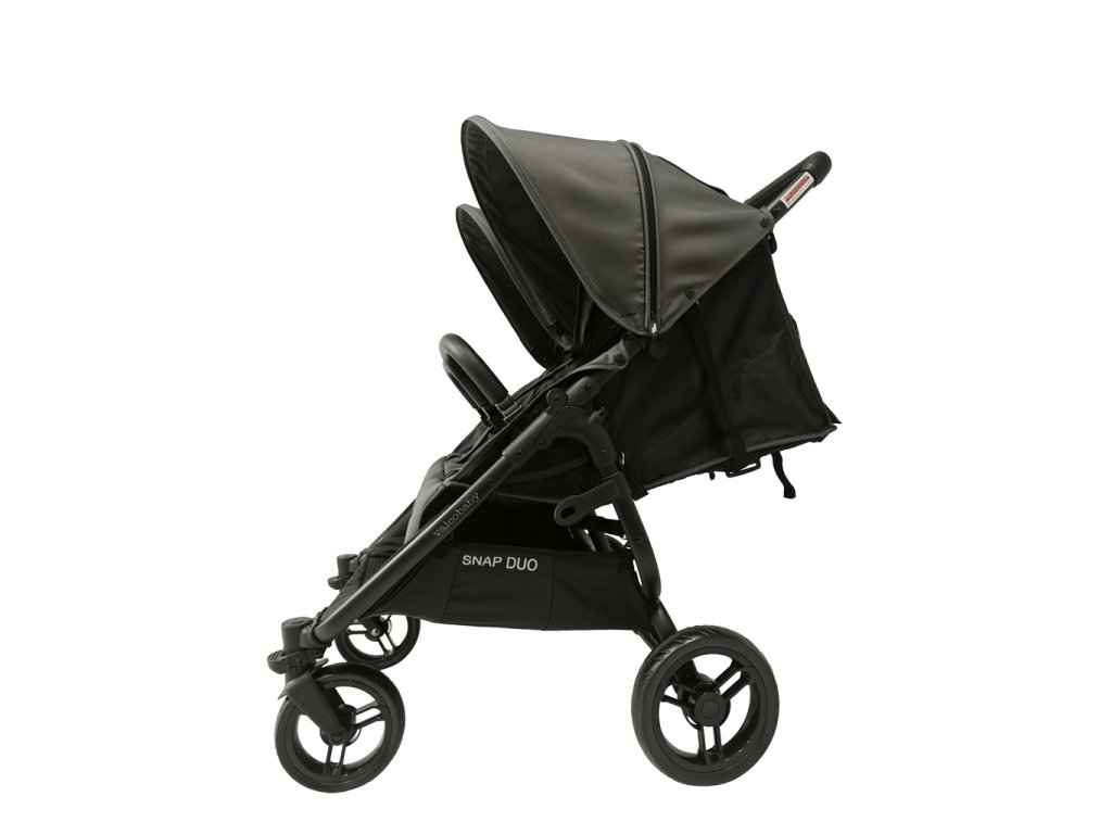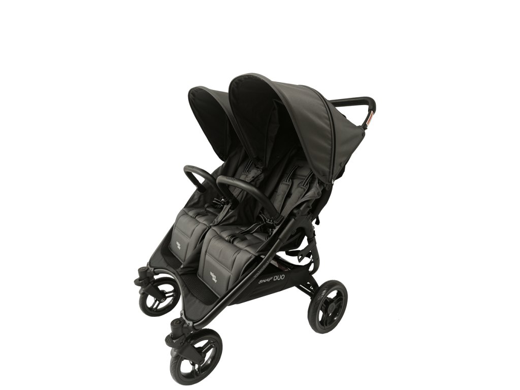 Snap Duo iker- vagy testvér babakocsi, amely ideális utazáshoz vagy mindennapi sétákhoz. Minden ülőrész teherbírása 22 kg, ami lehetővé teszi ikrek, de különböző korú gyermekek szállítását is. Elegáns fekete vázzal, forgatható első kerekekkel, kézzel varrott szegéllyel a fogantyún és a kapaszkodón, valamint steppelt ülésekkel rendelkezik a luxus érzetért.