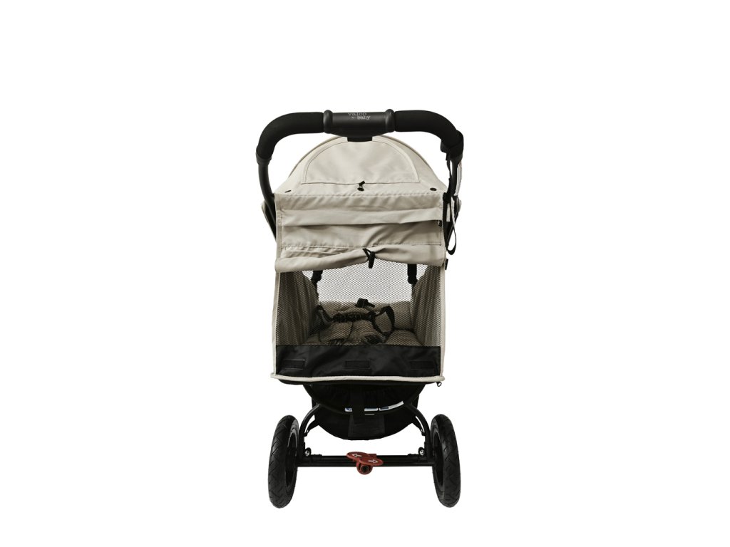 - A háttámla hátsó része két praktikus zsebet tartalmaz, ez a rész ráadásul feltekerhető, így szabaddá válik egy hálós ablak, melynek köszönhetően a levegő korlátozás nélkül keringhet a babakocsiban még a melegebb napokon is.