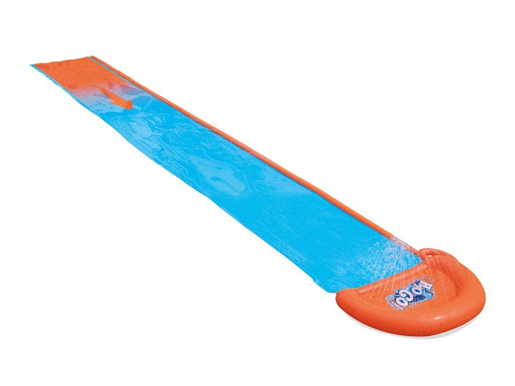 A Bestway vízi csúszda kerted ékessége lesz! Csatlakoztasd kerti slag adapterrel, és kezdődjön a móka. A közel ötméteres csúszda ideális a barátokkal való versengéshez. A csúszda végén a víz a medencébe folyik, a beépített szórófejek vízesés-hatást keltenek és nedvesen tartják a pályát. Csúszda hossza: 488 cm. Kiváló minőségű és tartós vinilből készült. A csúszda csak otthoni használatra alkalmas. Csak kültéren, felnőtt felügyelete mellett használható. Életkor: 3+