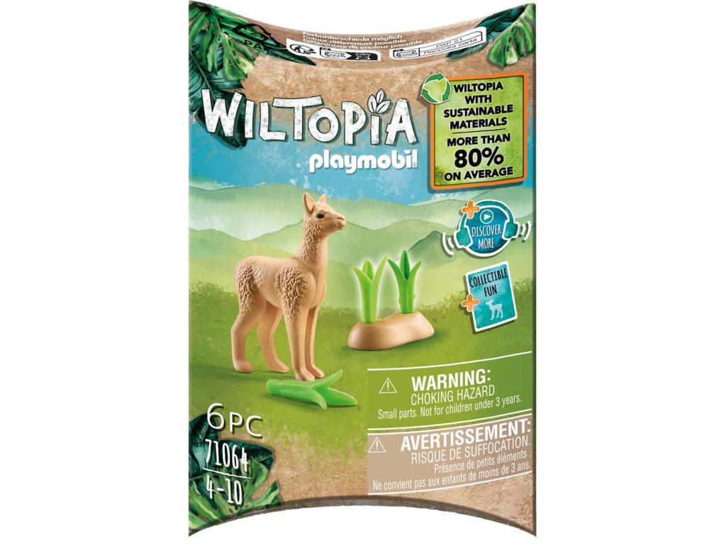Új, környezetbarát Wiltopia kollekció a PLAYMOBIL®-tól. A készlet tartalmaz egy alpakaborjút kiegészítőkkel és egy gyűjtői kártyát az adott állatra vonatkozó információkkal. Darabszám: 9. Csomag méretei: 12,5x8x3cm. Kor: 4+