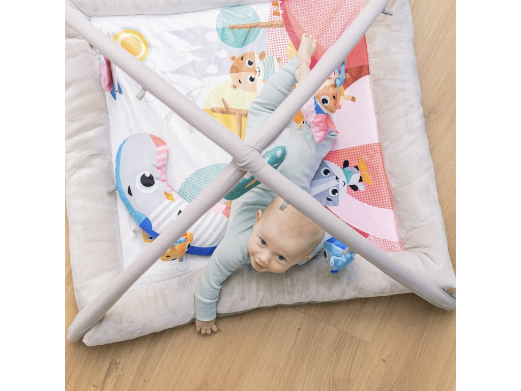 Az interaktív 3D játszószőnyeg tökéletes teret biztosít a legkisebb gyermekek számára a fejlődéshez és a szórakozáshoz. A plüss játékok, amelyek hangokat adnak ki érintésre, motiválják a babákat a szem-kéz koordináció gyakorlására, később pedig a megfogásra.
