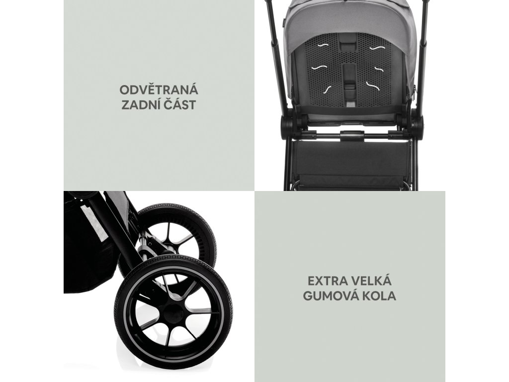 Az extra nagy kerekek a Move Cross babakocsit egyedülálló társává teszik minden terepen. A hátsó kerekek átmérője 28 cm, az elsőké pedig 20 cm. Természetesen az első kerekek rögzíthetők. |
