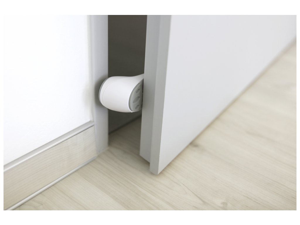 Az ütköző kiváló minőségű TRP anyagból készült, amely rugalmas és csúszásmentes. Ajtókon bárhol elhelyezhető az ajtó záródási irányában. Huzat esetén megakadályozza az ajtó becsapódását és a gyermek esetleges becsípődését. 180°-ban elforgatható.