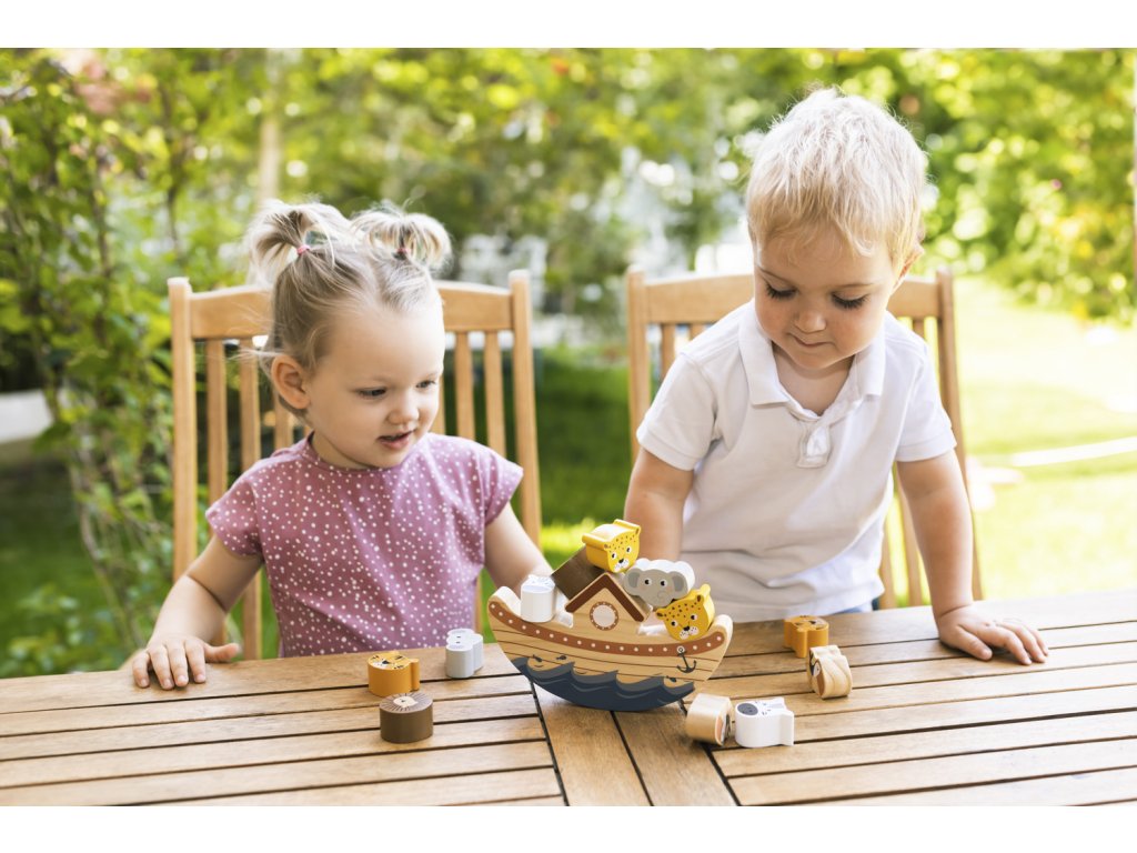 Játsszon egyedül vagy több emberrel, gyerekekkel, felnőttekkel, nagymamákkal, nagypapákkal – ez a szórakoztató játék mindenkit leköt! Rakodja fel fokozatosan az összes faállatot a játéktérre, de vigyázz! Minél több állat van a fedélzeten, annál nagyobb a kockázata annak, hogy a bárka felborul, vagy az állatok leesnek a hajóról!