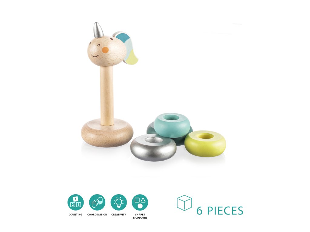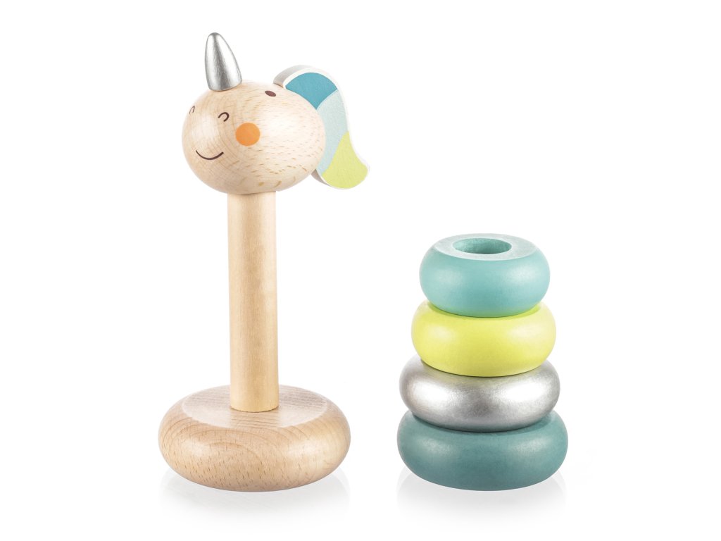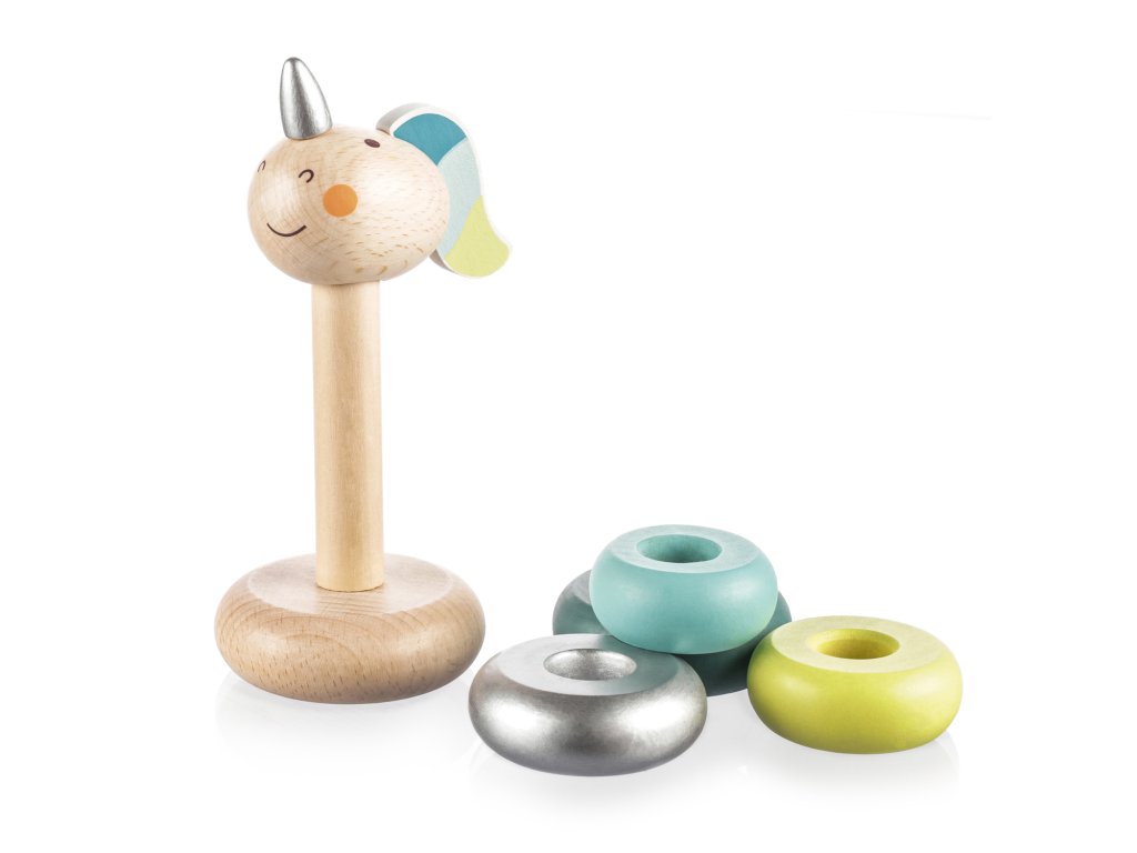 Fából készült unikornisos karikák 16 hónapos kortól.