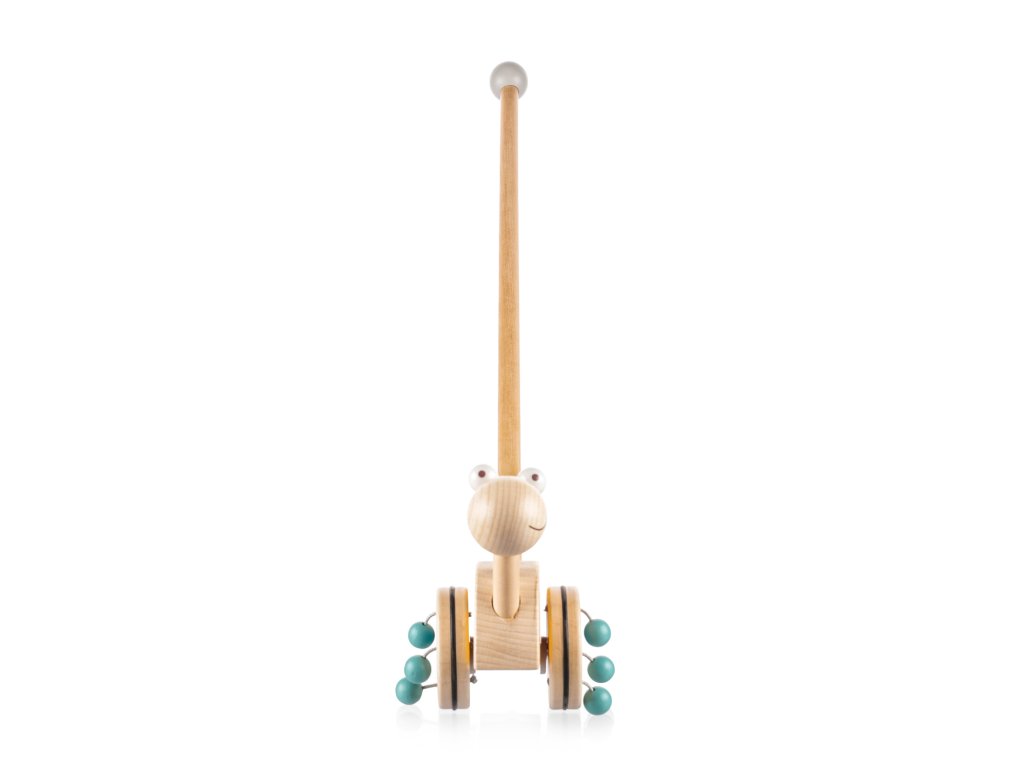 A rúdon lévő lovas ideális játék a járni kezdő gyermekek számára. A szórakoztató dinoszaurusz a hosszú rúdon mozog, és a kerekekhez rögzített fa gyöngyöknek köszönhetően hangot ad ki, amely járásra ösztönzi a gyermeket, és órákon át szórakoztatja. A robusztus rúd támaszként is szolgál a gyermek első lépéseihez, és a végén fa golyóval van ellátva a nagyobb biztonság érdekében. A tolóelemnek nincsenek éles szélei, és tartós fából készült, hosszú élettartammal.
